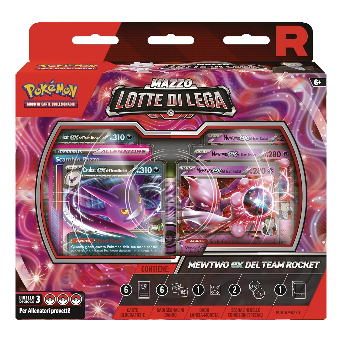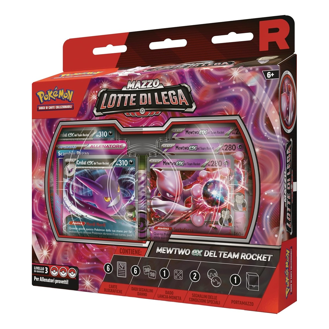 Include Mewtwo EX e carte Team Rocket per sinergie tematiche e tattiche.