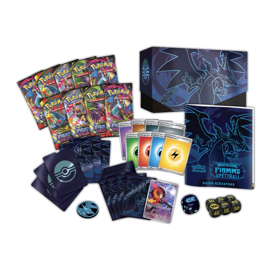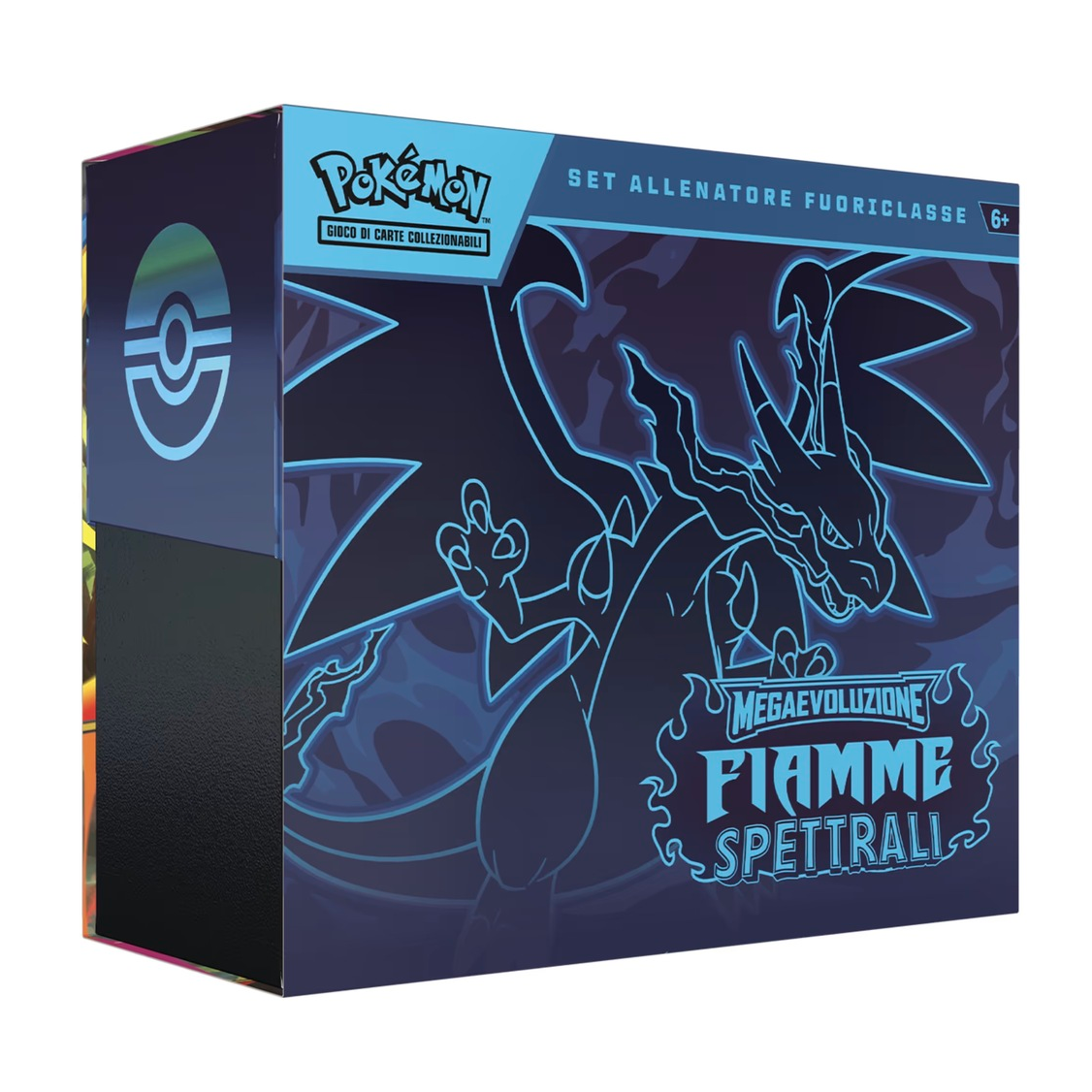 Roventi fiamme blu squarciano le tenebre che regnano sul campo di lotta mentre Mega Charizard X-ex si libra in volo e domina gli avversari dall’alto! A contrastare la potenza del suo fuoco arriva il brivido intenso di Mega Gengar-ex che lentamente si fa largo con la sua sagoma oscura, e ora entrambi i Pokémon si preparano ad attaccare. Anche Mega Heracross-ex, Mega Lopunny-ex e tanti altri Pokémon si schierano sul campo determinati a dare il massimo e a mostrare a tutti il loro coraggio nell’espansione Megaevoluzione – Fiamme Spettrali del GCC Pokémon!