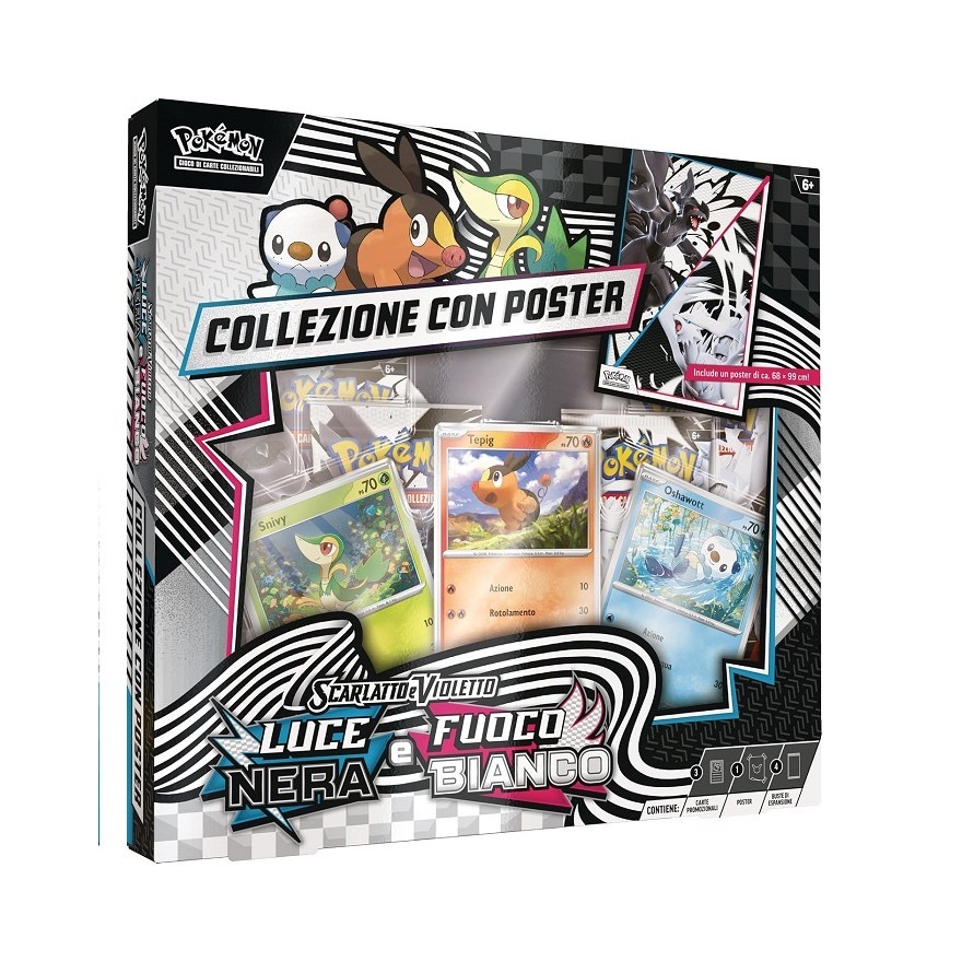 Questa collezione contiene inoltre due buste dell’espansione Scarlatto e Violetto – Luce Nera del GCC Pokémon e due dell’espansione Scarlatto e Violetto – Fuoco Bianco del GCC Pokémon.