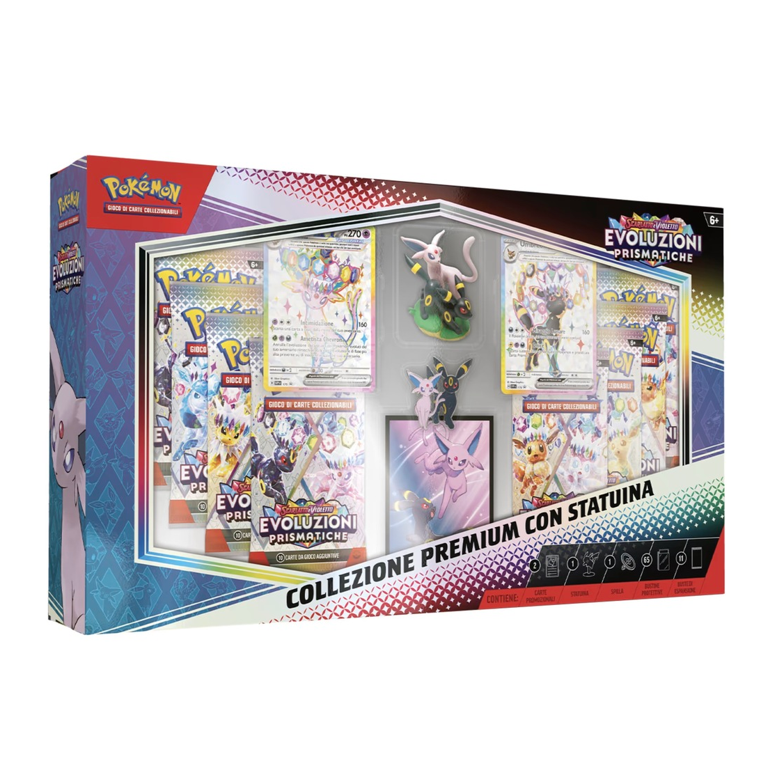 – 11 buste dell’espansione Scarlatto e Violetto – Evoluzioni Prismatiche del GCC Pokémon•Una carta codice per il GCC Pokémon Live