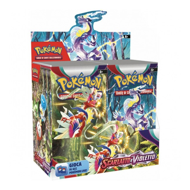 L’inizio di una nuova era! I Pokémon EX ritornano per stabilire il loro dominio sulla terra di Paldea. E con loro, una miriade di nuovi mostriciattoli, leggendari potentissimi e forme regionali mai viste tracciano la via verso una nuova avventura. E allora, accetta la sfida. Procurati un po’ di bustine, e nessun allenatore al mondo oserà opporsi a te.