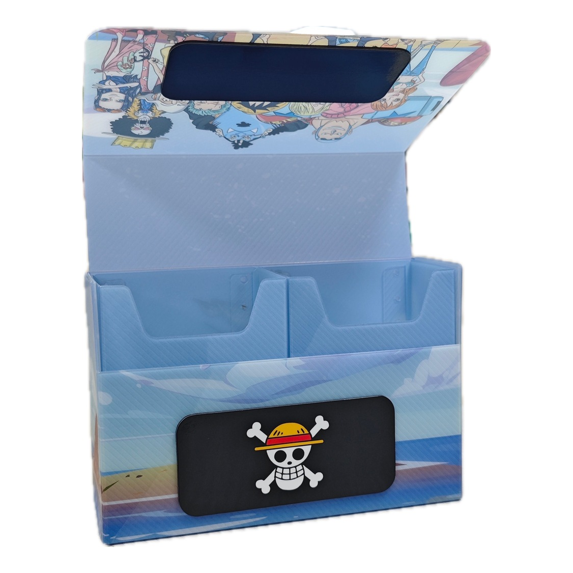 Set sail on your next adventure with this vibrant Pirate deckbox. This deck box is perfect for storing and protecting your valuable trading cards.