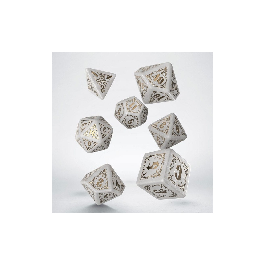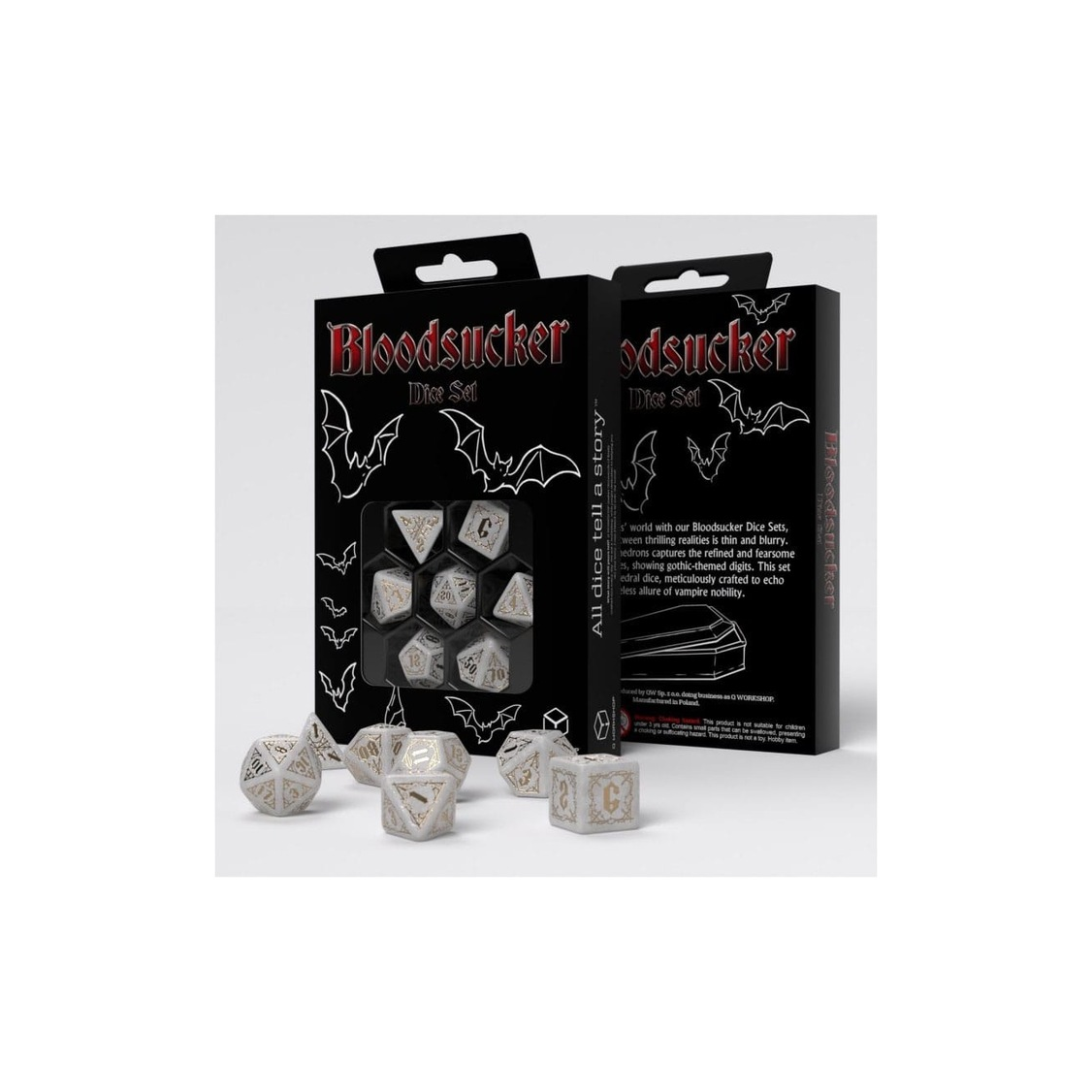 From the depths of ancient crypts and the shadows of forgotten tombs emerges the Bloodsucker Dice Set: Immortal, a weapon imbued with the power of eternal life. The shimmering white dice, adorned with golden embellishments worthy of the most powerful vampire houses, make this set an indispensable piece of equipment for anyone seeking to wield the infinite power of the undead.