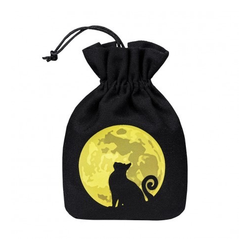 At night, all cats are grey… except for this one! This dice pouch, made of sturdy black cotton, features a colorful print of a cat sitting in front of the full moon. The best part? The moon print really glows in the dark! The pouch is closed with durable satin strings and can hold 9 full sets of dice.
