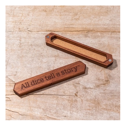 Perfect for your dice! Crafted precisely and finished by hand, the Sapelli All Dice Box is a must-have for dice enthusiasts. Functional two-part design, cork lining, and magnetic closure ensure your dice safety. The natural sapelli wood color adds elegance. QW logo on the bottom, “All Dice Tell a Story” on the lid. Perfect for collectors and gamers, it combines practicality with aesthetics.