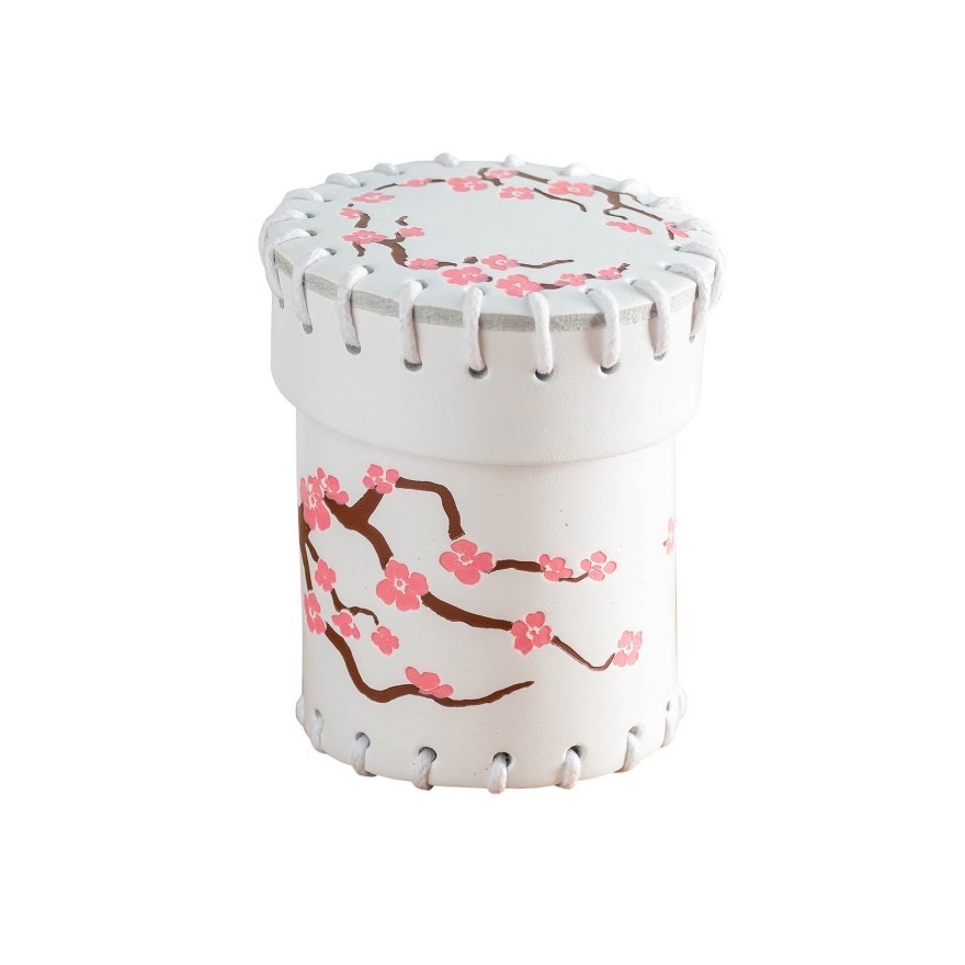 That experience has inspired us to create this Japanese Leather Dice Cup. We made it of natural leather in white color and adorned its lid and body with a colorful print; it shows a brown cherry tree branch as it’s beginning to that is starting to come to life with pink flowers!