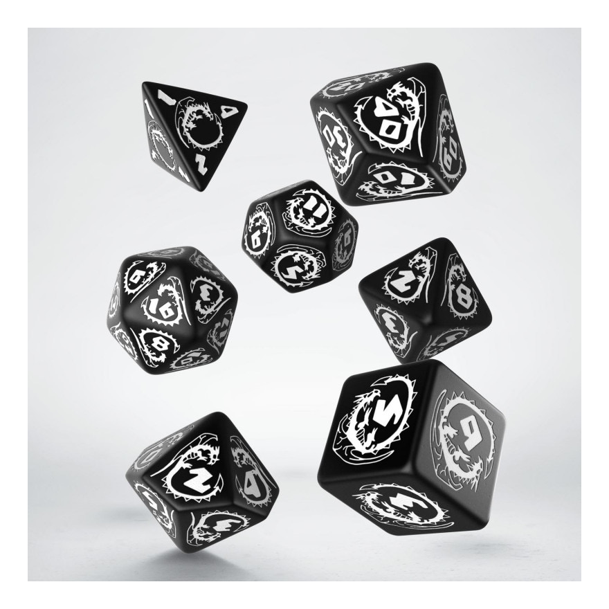 The difference between East and West is also a dispute over what dragons are. In the Far East, it is believed that they are wise and good beings who help people. They are also supposed to bring good luck. In the West, dragons are dangerous monsters eating people and burning property. Sometimes the dragon is actually the Herald of the Apocalypse. However, the world is one, so our dragon dice are to reconcile and not divide. Thanks to that we could design universal dragon dice, dedicated to all these majestic creatures. After reading the whole canon of the “Dragonology”, you can see clearly: dragons are wise creatures that can be good, bad or neutral like people and characters in an RPG. Our sets could not be made of any other raw material than the one obtained from the lands marked on the ancient maps as HIC SUNT DRACONES. We will not tell you where we got such great material, but thanks to it, our engraved dice will last for years. Like the dragon scales, they will also be beautiful and amazing for a long time. It should also be mentioned that the dragons dice are produced almost from the very beginning of Q WORKSHOP history and today the latest series have no equal on the market. We have perfected them for years and we plan to further modernize the technology so that there will never be any better dice, really worthy of dragon treasure.