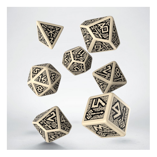 Dwarves are usually associated with undersized, bearded folk, who love gold, beer and to juggle hammers. They originally come from the Viking sagas. They were created, thanks to the will of the gods, from the tiny bones of the dead giant – Ymir, while the rest of his skeleton became the building material of the world known to us. They are brothers of the mountains and are really born of the bones of the earth itself. Our dice are created in a similar way. We grind the best Nordic giant’s bones we have in stock and then melt them down to make a resource worthy of dwarves craftsmanship. Dwarves are known as the best blacksmiths and jewellers. They also deal with the magic of items. From their workshops come the greatest treasures and the best weapons in the whole known world of the North. They were the ones who forged the weapons of the gods., so our dice can’t be ordinary. They must be perfected all the time, just as the dwarves are always looking for the perfect forms that are enchanted in the metal and stone. This set must be as strong as the bearded people and beautiful in their usefulness as the most perfect product of the dwarven craft. We decided on an extensive engraving, where the numbers and symbols of weapons are more strongly marked and the delicate “maze” of the lines creates a background. That’s how we got dice worthy of dvergar and their creations.