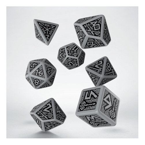 Dwarves are usually associated with undersized, bearded folk, who love gold, beer and to juggle hammers. They originally come from the Viking sagas. They were created, thanks to the will of the gods, from the tiny bones of the dead giant – Ymir, while the rest of his skeleton became the building material of the world known to us. They are brothers of the mountains and are really born of the bones of the earth itself. Our dice are created in a similar way. We grind the best Nordic giant’s bones we have in stock and then melt them down to make a resource worthy of dwarves craftsmanship. Dwarves are known as the best blacksmiths and jewellers. They also deal with the magic of items. From their workshops come the greatest treasures and the best weapons in the whole known world of the North. They were the ones who forged the weapons of the gods., so our dice can’t be ordinary. They must be perfected all the time, just as the dwarves are always looking for the perfect forms that are enchanted in the metal and stone. This set must be as strong as the bearded people and beautiful in their usefulness as the most perfect product of the dwarven craft. We decided on an extensive engraving, where the numbers and symbols of weapons are more strongly marked and the delicate “maze” of the lines creates a background. That’s how we got dice worthy of dvergar and their creations.