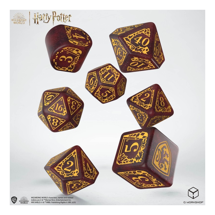 Experience the magic of the Wizarding World with Q WORKSHOP, proudly presenting a Modern Dice Set dedicated to Gryffindor. The design is filled with symbols and details referring to the house known for the courage of its members. The material of the dice is mixed with glitter dust, making it shimmer and causing the red and gold colors even more appealing.