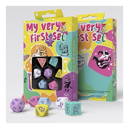 From one adventure to the next! My Very First Set – Little Berry is an ideal tool for introducing the youngest to the world of RPG, as well as collecting. Each die has its own color scheme, as well as its own font and engravings, matching the fairy-tale character depicted on the highest face. Effectively, the set consists of 7 different dice with a fairy-tale atmosphere – great to start!