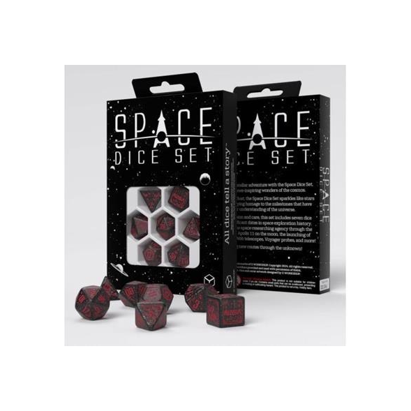 Unisciti a noi nel commemorare le conquiste più significative della storia umana. Il set di dadi spaziali: Apollo presenta 7 poliedri unici che mostrano motivi legati all’esplorazione dello spazio.