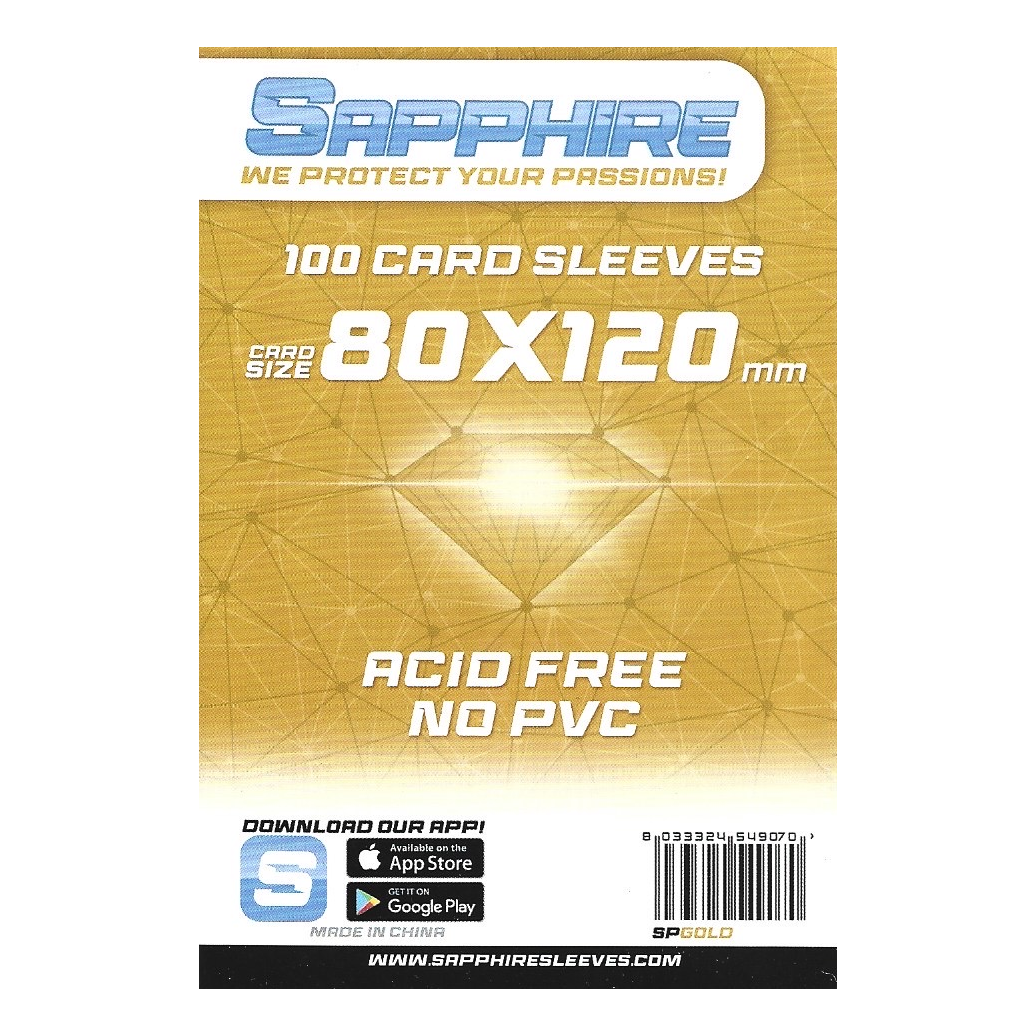 Le 100 bustine protettive Sapphire GOLD 80 x 120 mm sono perfette per proteggere le carte del gioco Dixit, ma anche per altri giochi da tavolo e collezionabili che utilizzano carte di queste dimensioni. Con un design elegante e una protezione premium, queste bustine mantengono le tue carte al sicuro da danni, graffi e polvere, garantendo una lunga durata nel tempo.