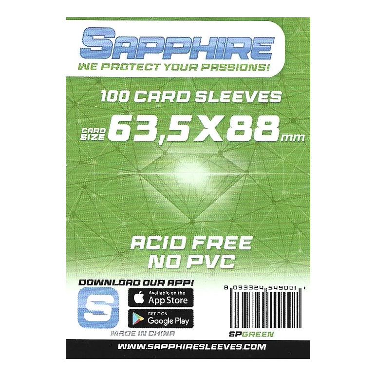 Le 100 bustine protettive Sapphire GREEN 63,5 x 88 mm offrono una protezione di qualità per le carte del formato comune, come quelle utilizzate in giochi da tavolo e di carte. Grazie al materiale di alta qualità e al design trasparente, queste bustine sono perfette per proteggere le tue carte mantenendole visibili, offrendo una protezione sicura contro danni, graffi e polvere.
