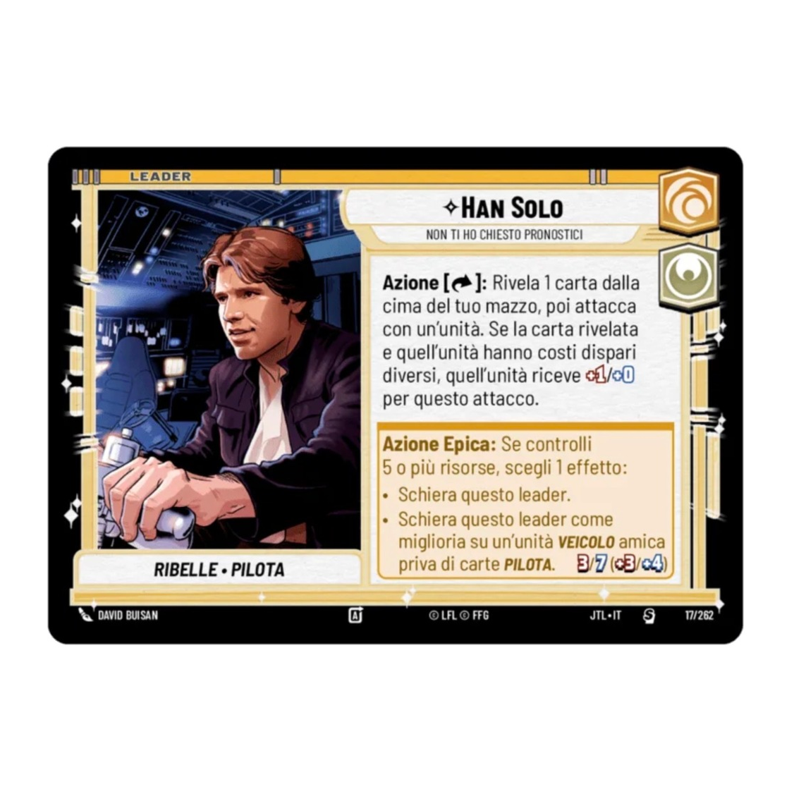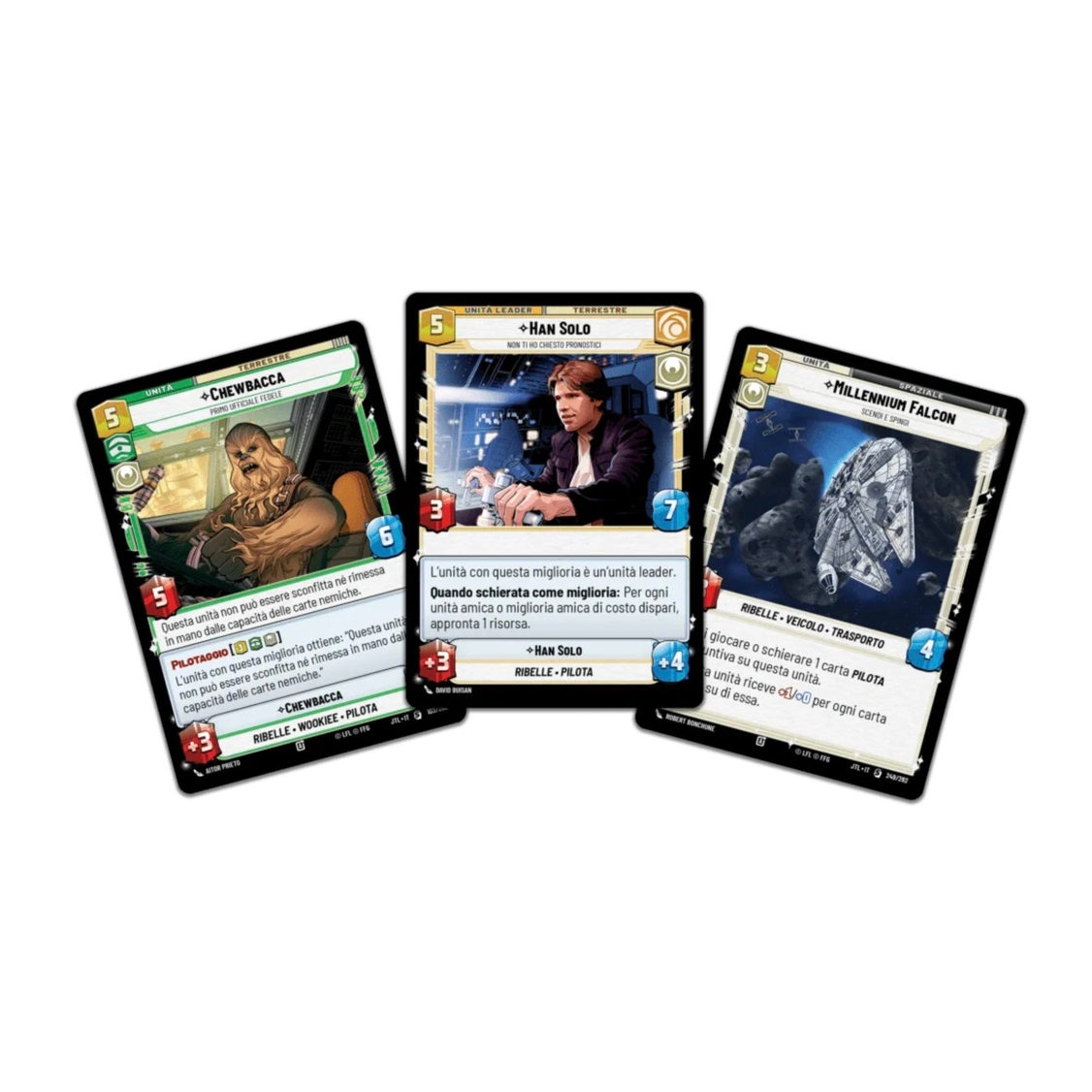 Appronta le tue risorse e spara per primo con Han Solo in questo spotlight deck! Questa confezione contiene 1 carta leader Han Solo e un mazzo precostruito di 50 carte pronto per giocare incentrato sui suoi punti di forza.