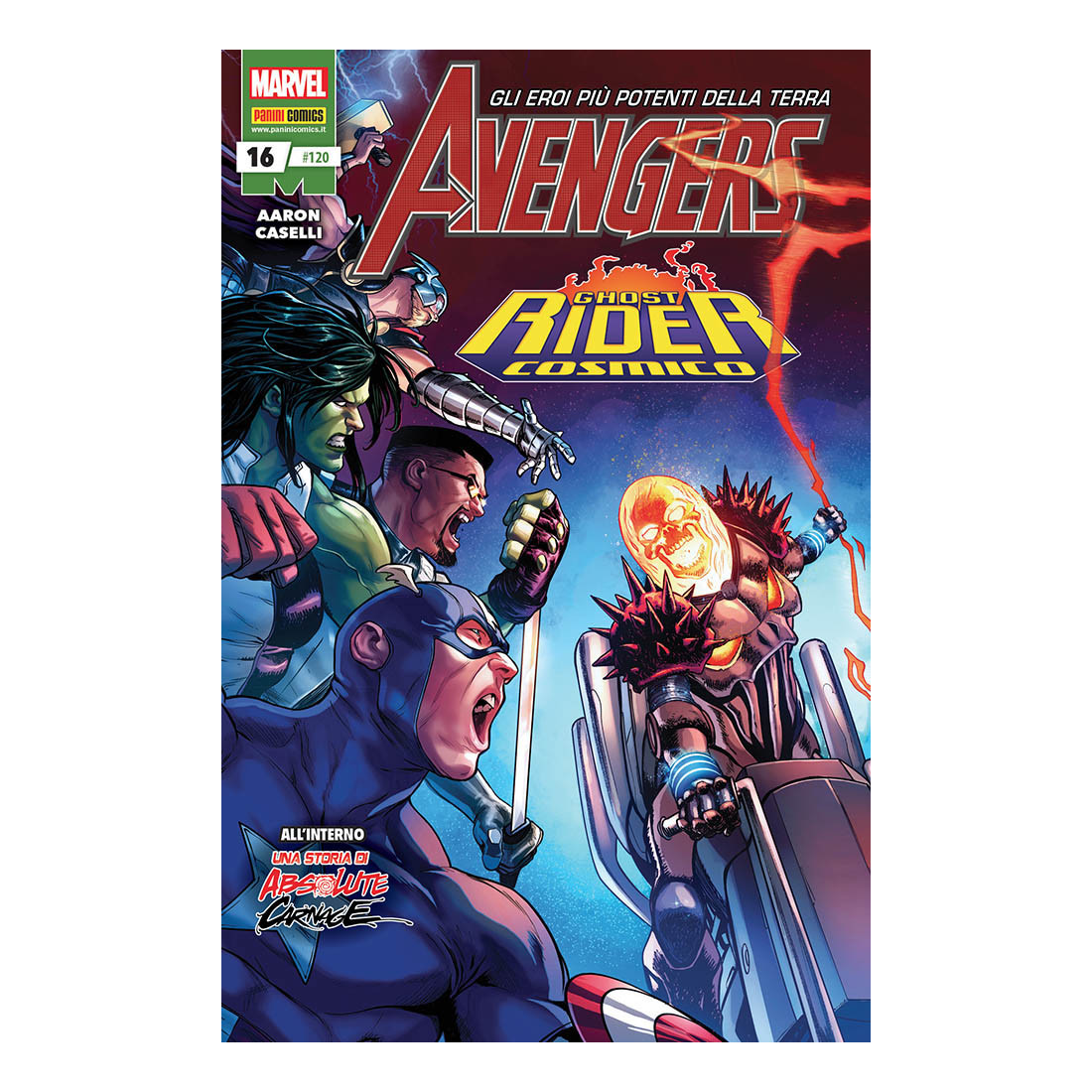 La corsa dei Ghost Rider al traguardo!La missione di Robbie Reyes è battere Johnny Blaze, il Re dell’Inferno! Gli Avengers contro Frank Castle, il Ghost Rider cosmico!Absolute Carnage continua qui! Ospite speciale: il Simbionte della Vendetta!