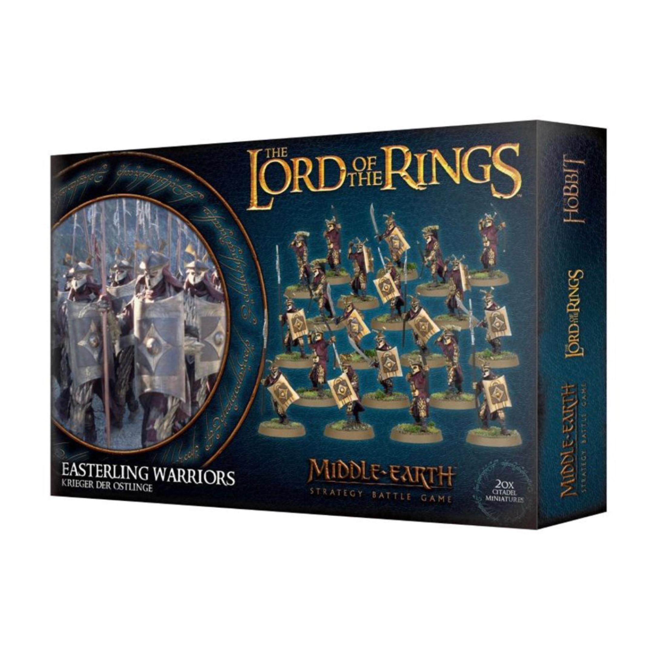 Easterlings are amongst the most fanatical followers of the Dark Lord and the best equipped of all the warriors at his command. Unlike the rabble of Orcs that spew forth from the Black Gate, the armies of the East are well-trained and disciplined warriors that will fight fiercely for Sauron, who they view as a vengeful deity. As children they are schooled in the art of war, and their womenfolk fight alongside the men as equals – in Rhûn all are prepared to fight for the Dark Lord. Trained to fight in deadly phalanxes, their spears form a hedge of sharpened blades that is virtually impenetrable – only a foolish general would send his warriors to take on a block of Easterlings head on. This plastic boxed set contains 54 components, with which to build 20 Easterling Warriors: 8 with sword and shield, 8 with bow, and 4 with spear and shield. This set comes with 20 25mm round bases. These miniatures are supplied unpainted and require assembly.