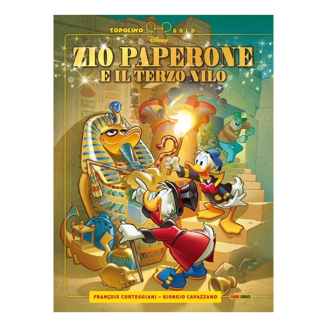 Nel palmarès delle storie cavazzaniane, Zio Paperone e il terzo Nilo viene universalmente indicata ai primi posti: un vero e proprio capolavoro che si fa riscoprire a ogni lettura, come un fondale pieno di tesori da cui si riemerge più ricchi dopo ogni immersione. Le meravigliose tavole di Giorgio Cavazzano tornano nel grande formato di Topolino Gold per farvi viaggiare con gli occhi (e con il cuore) in un’avventura esotica e poetica, nata dalla penna del grande François Corteggiani. A completare il volume, un commento alla storia raccolto dalla viva voce di Cavazzano e un ricordo dello sceneggiatore francese.
