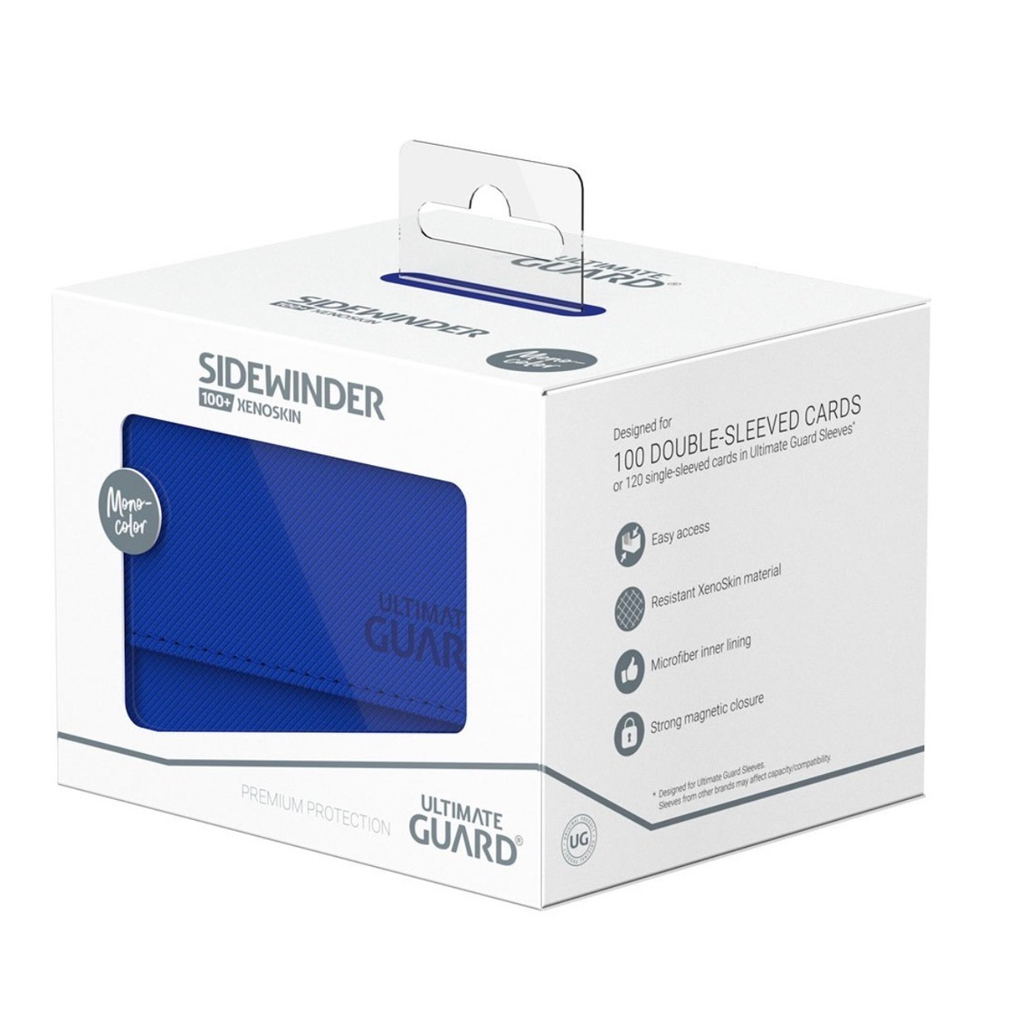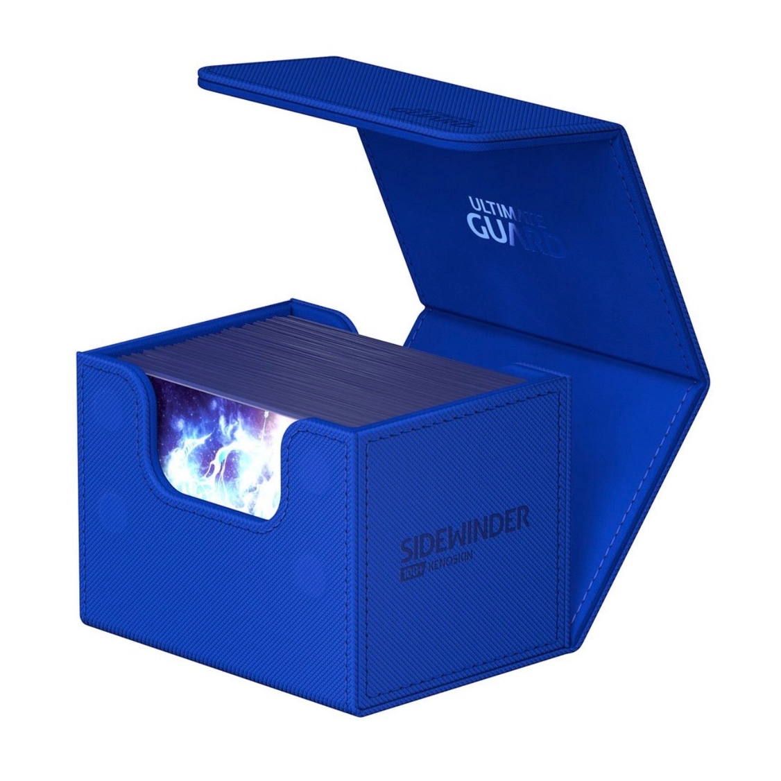 The Sidewinder 100+ deck case provides easy access to your card deck from both sides. The box is optimized to hold 100 double-sleeved or 120 single-sleeved standard sized cards in Ultimate Guard Sleeves.