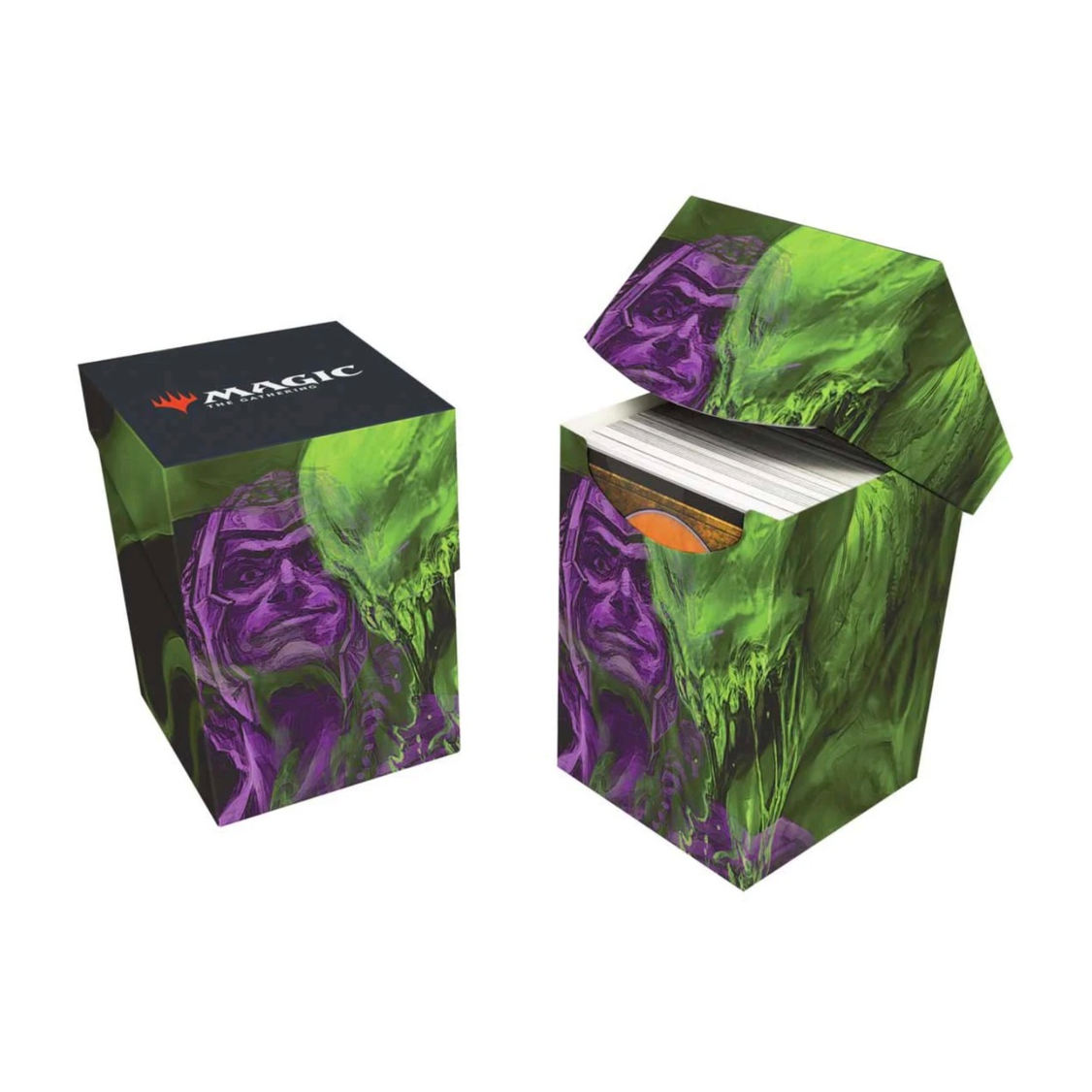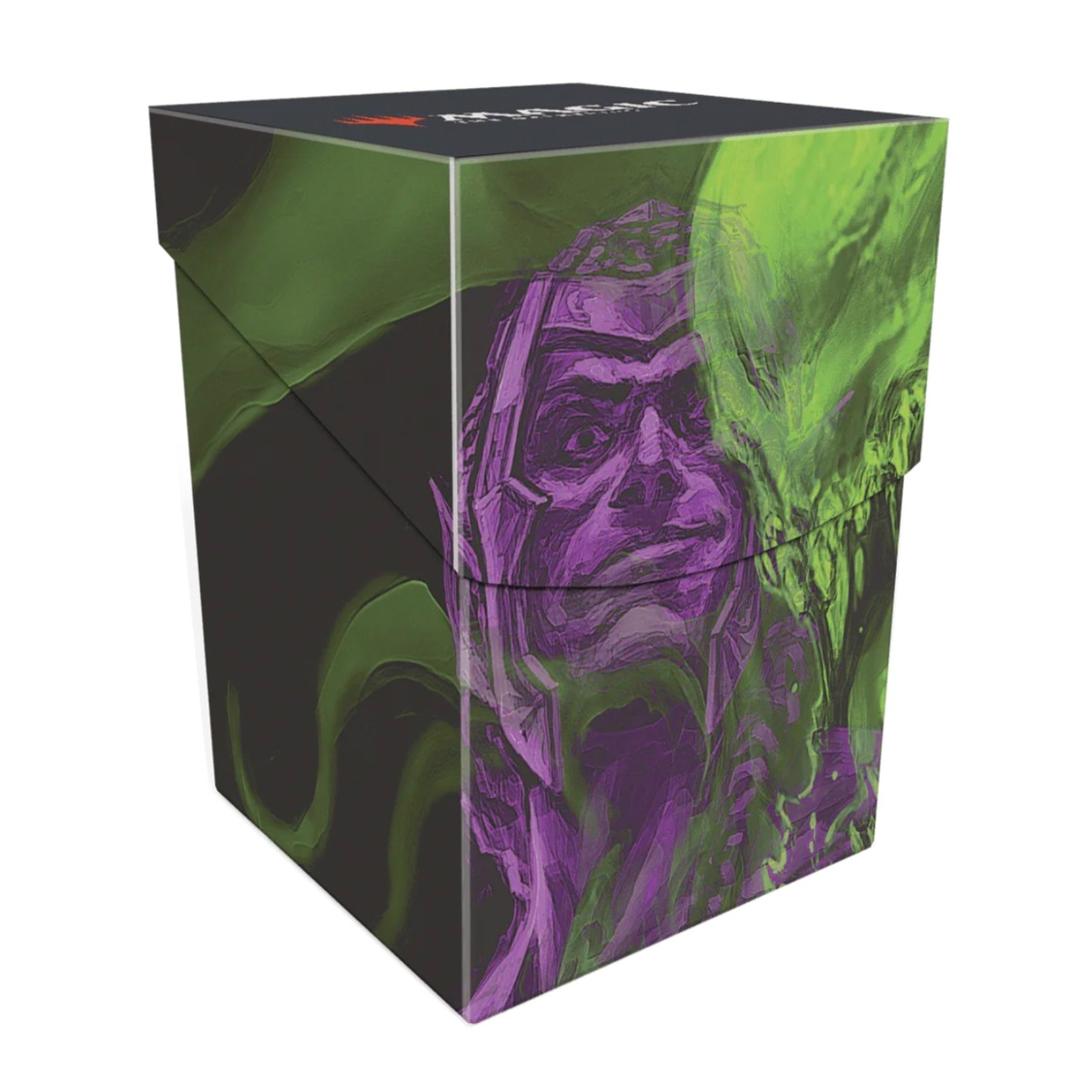 The 100+ Deck Box® card storage container features vibrant, full-color artwork from Magic: The Gathering and includes one deck divider. Made with archival-safe, non-PVC, rigid polypropylene materials, you can store up to 100 double-sleeved cards with confidence. The self-locking lid keeps your cards securely stored when not in use, while also offering easy access. Sized for standard-size trading cards.