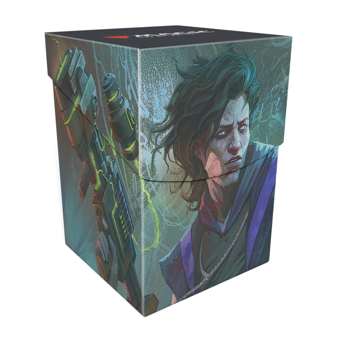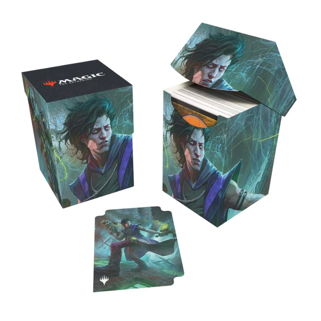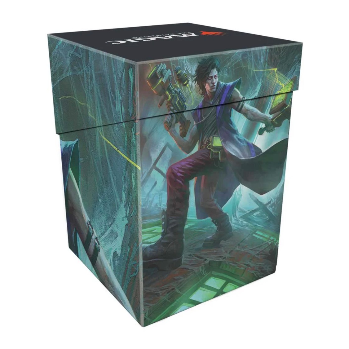 The 100+ Deck Box® card storage container features vibrant, full-color artwork from Magic: The Gathering and includes one deck divider. Made with archival-safe, non-PVC, rigid polypropylene materials, you can store up to 100 double-sleeved cards with confidence. The self-locking lid keeps your cards securely stored when not in use, while also offering easy access. Sized for standard-size trading cards.