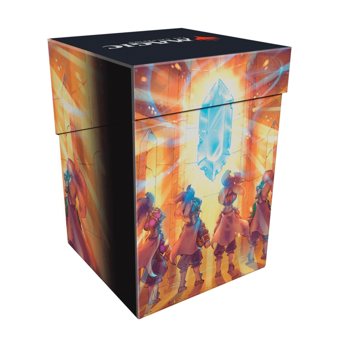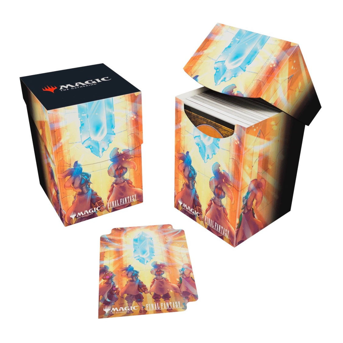 The Magic: The Gathering®—FINAL FANTASY™ The Crystal’s Chosen 100+ Deck Box card storage container features vibrant, full-color artwork and includes one deck divider. Made with archival-safe, non-PVC, rigid polypropylene materials, you can store up to 100 double-sleeved cards with confidence. The self-locking lid keeps your cards securely stored when not in use, while also offering easy access. Sized for standard-size trading cards.