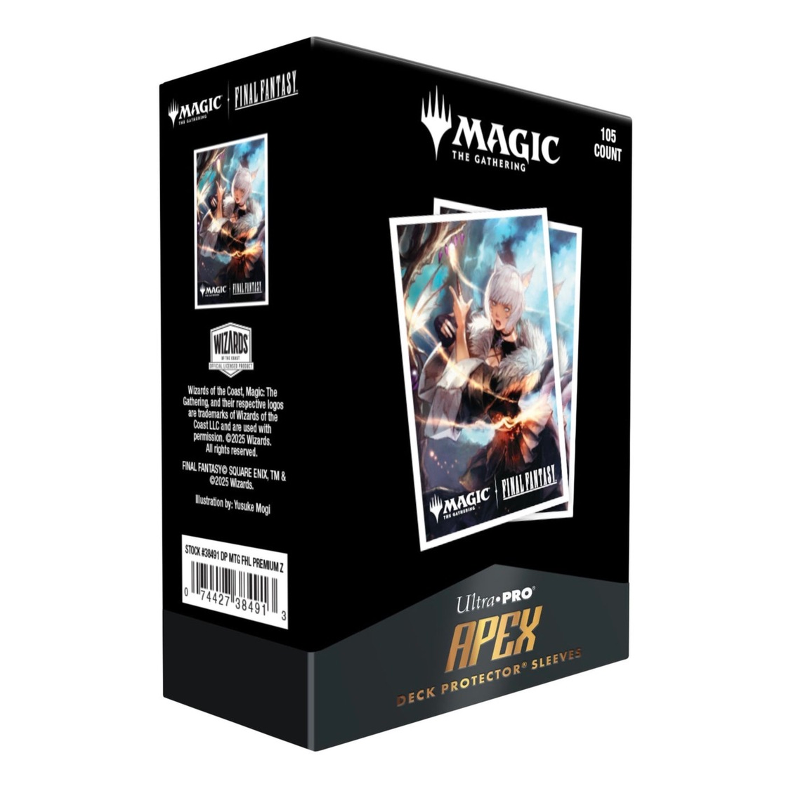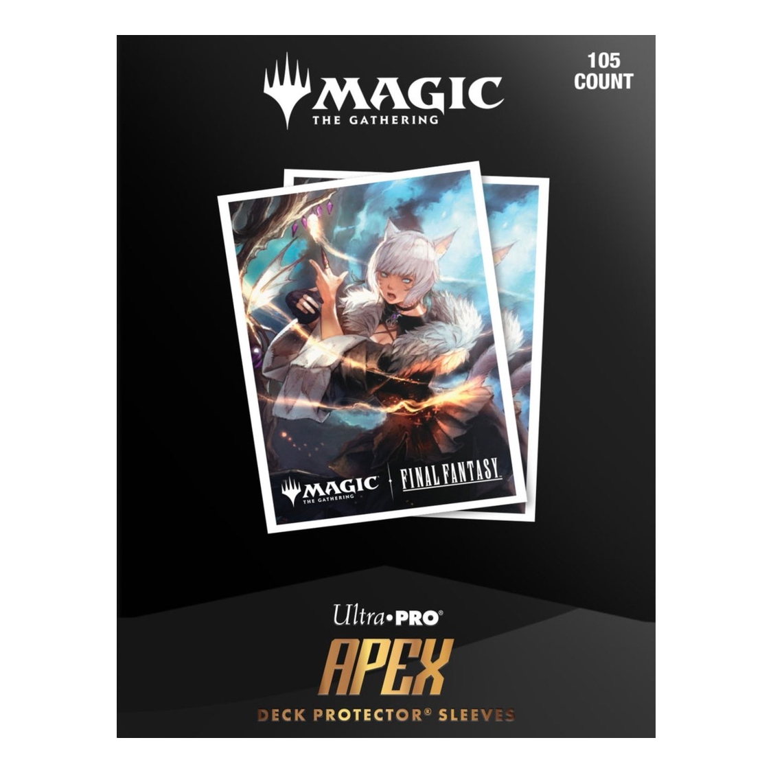 The MAGIC: THE GATHERING®—FINAL FANTASY™ 105ct APEX Deck Protector™ Sleeves are made with our new easy-shuffle formulation and feature vibrant artwork on a textured back. Archival-safe polypropylene materials ensure you can sleeve your cards with confidence, and the gloss clear front allows your foil cards to shine! Sized for standard size trading cards measuring 2.5 in. x 3.5 in.