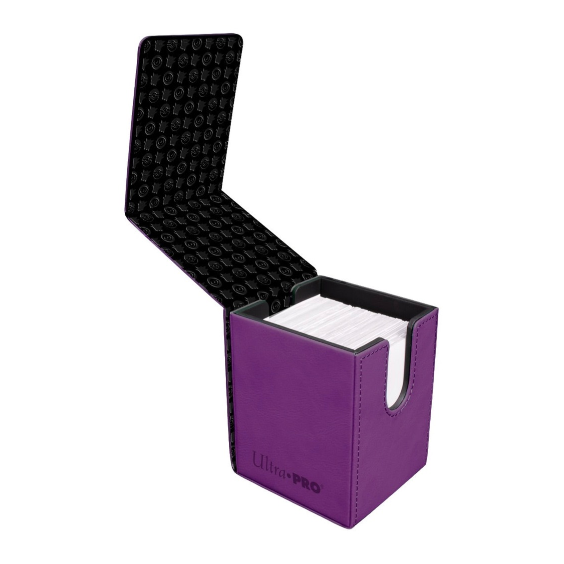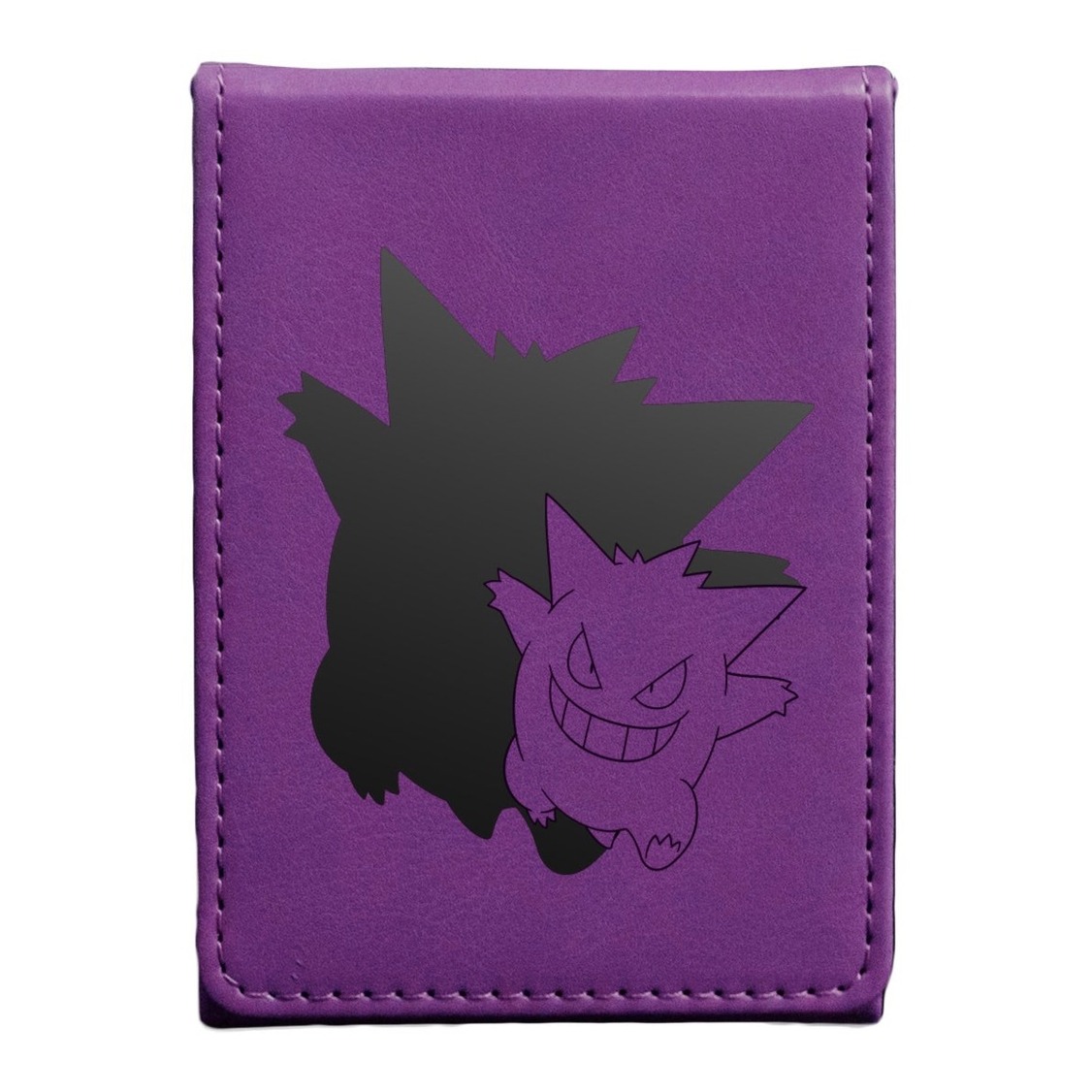 The ALCOVE® Flip Box for Pokémon features a debossed image of Gengar on a leatherette finish with premium foil detailing. A strong magnetic closure keeps your cards safely secured inside, and dual thumb notches offer easy access to your deck. This DECK BOX® holds up to 100+ standard size trading cards double-sleeved in ULTRA PRO® DECK PROTECTOR® sleeves. The lid can be detached from either side of the box to accommodate any play style.