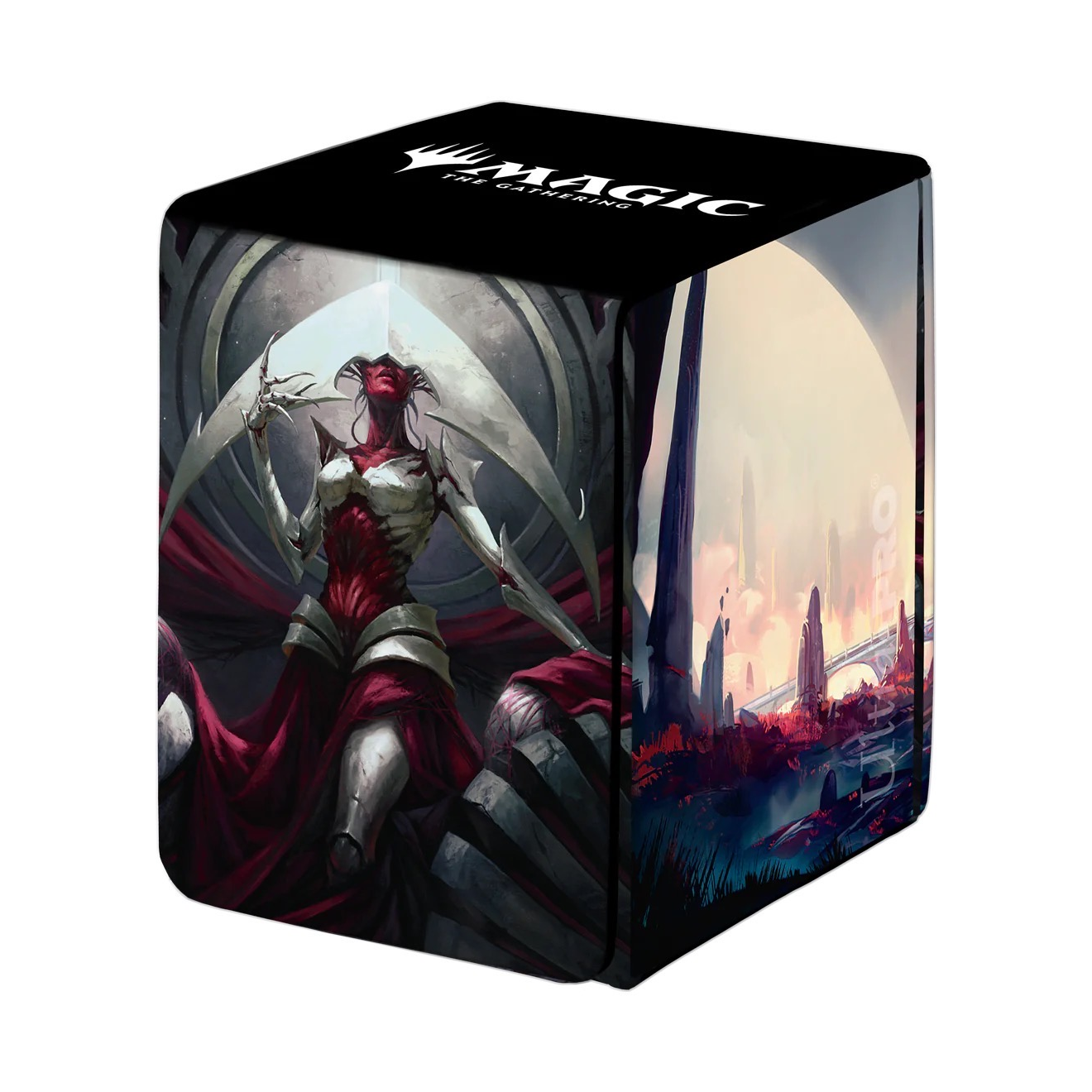Officially licensed Premium Leatherette Deck Box for Magic: The Gathering Phyrexia all will be one Features exclusive artwork Strong magnetic closure featuring multiple magnets to hold the lid securely shut Holds up to 100 standard size cards double-sleeved Lid can be detached from both sides of the box to reveal dual thumb notches for easy access to your deck.
