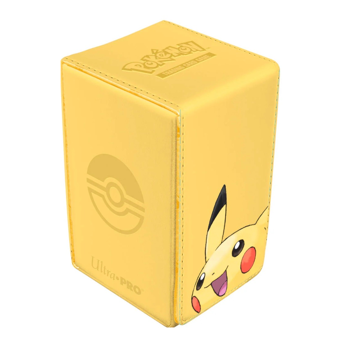 L’Alcove Tower Deck Box® contiene tutto ciò di cui hai bisogno per giocare a Pokémon TCG! Realizzato in un pregiato materiale in similpelle gialla, l’Alcove Tower contiene fino a 100 carte di dimensioni standard a doppia busta in buste Ultra PRO Deck Protector®. Presenta due tacche per i pollici per un facile accesso al mazzo e una forte chiusura magnetica del coperchio con meccanismo di bloccaggio per una conservazione sicura. Include uno scomparto inferiore rimovibile per dadi, monete o altri piccoli accessori da gioco. Meccanismo di bloccaggio sicuro con chiusura magnetica extra forte.