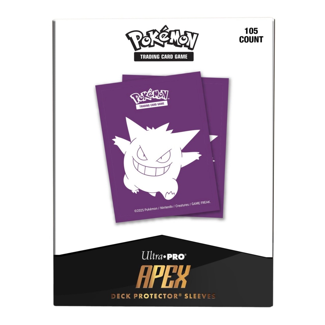 The 105ct APEX DECK PROTECTOR® Sleeves for Pokémon TCG are made with our new easy-shuffle formulation and feature vibrant Gengar artwork on a textured back. Archival-safe polypropylene materials ensure you can sleeve your cards with confidence, and the gloss clear front allows your foil cards to shine! Sized for standard size trading cards measuring 2.5 in. x 3.5 in.