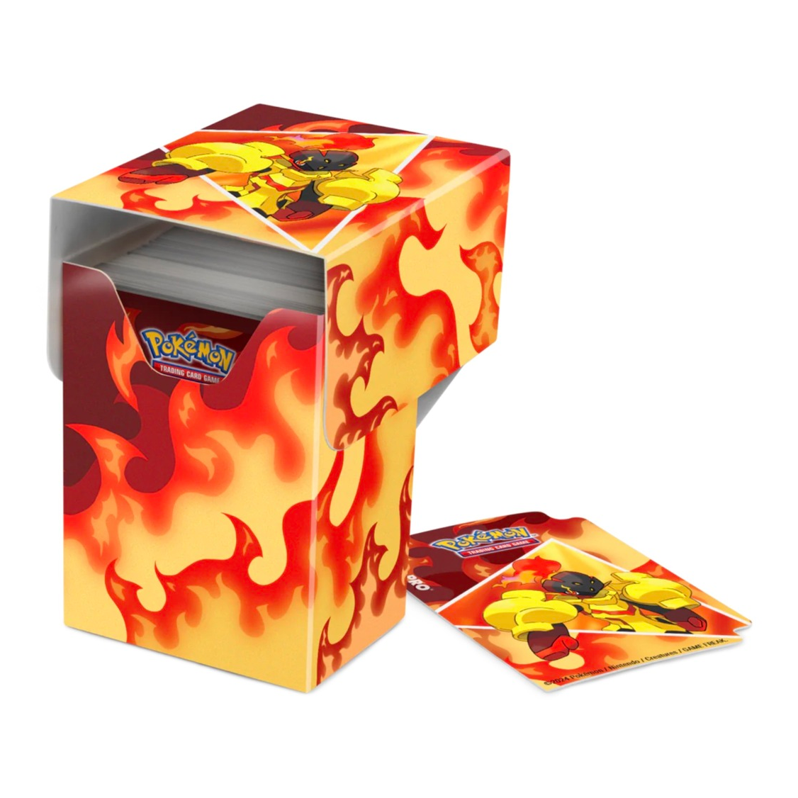 Full View Deck Box for Pokémon feature vibrant, full-color artwork and includes one matching deck divider. Made with archival-safe, non-PVC, rigid polypropylene materials, these deck boxes can store up to 75 double-sleeved cards comfortably. The self-locking lid keeps your cards securely stored when not in use, while also offering easy access. Sized for standard size trading cards.