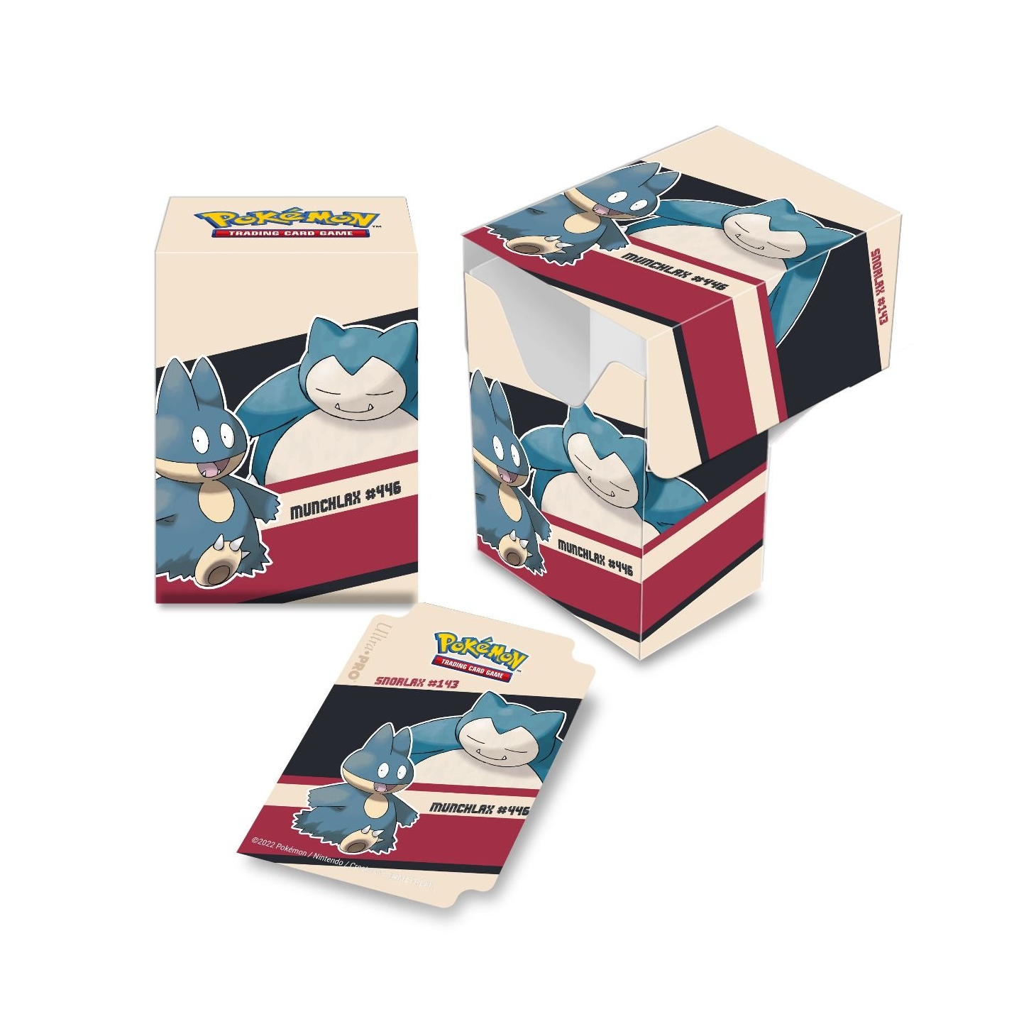 Full View Deck Boxes® for Pokémon feature vibrant, full-color artwork of Snorlax and Munchlax, and includes one matching deck divider. Made with archival-safe, non-PVC, rigid polypropylene materials, these deck boxes can store up to 75 double-sleeved cards comfortably. The self-locking lid keeps your cards securely stored when not in use, while also offering easy access. Sized for standard size trading cards. Perfect for the TCG player or collector who loves the Sleeping Pokémon!