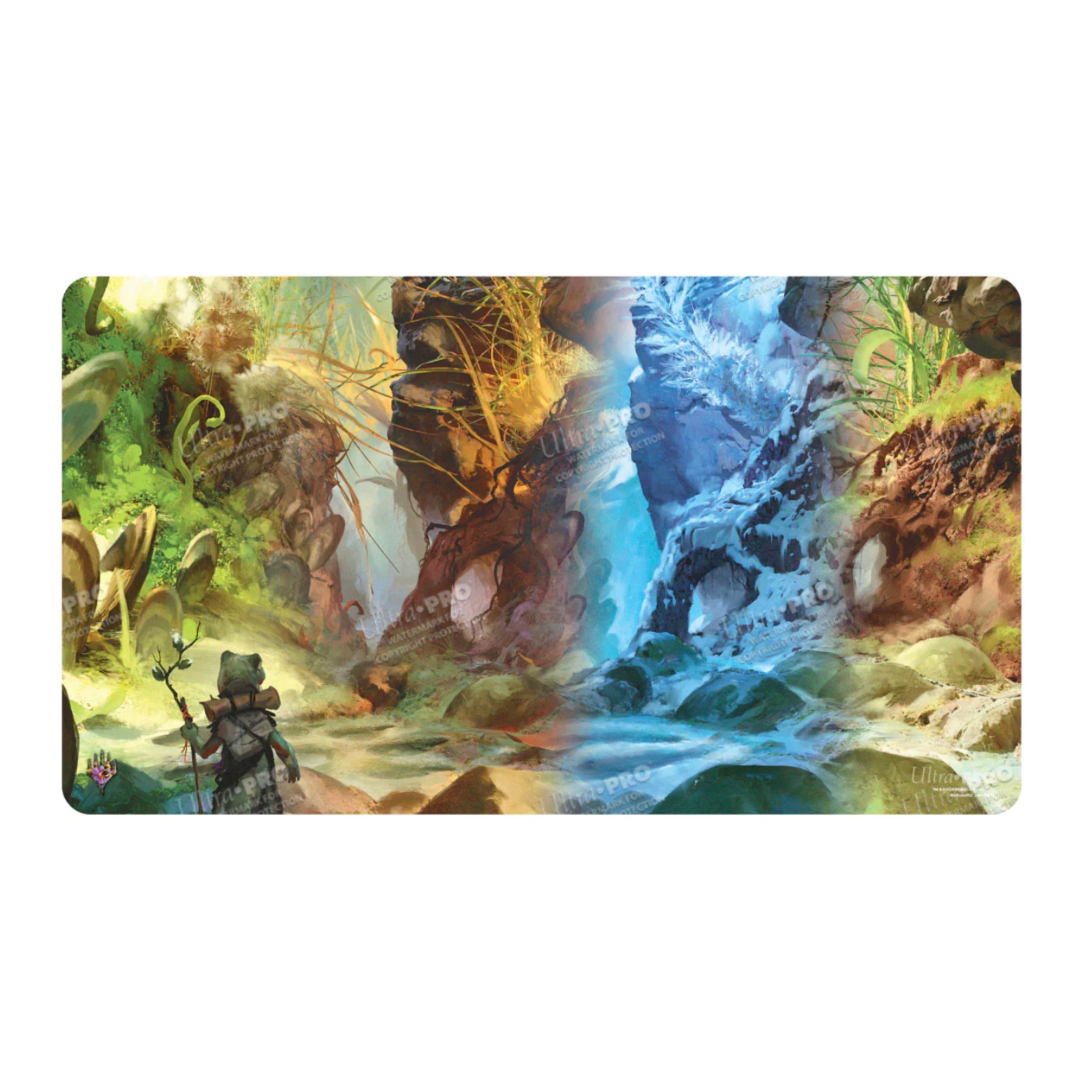 Playmats feature popular Magic: The Gathering artwork. Made with a soft fabric top to reduce damage to cards during play and a non-slip rubber backing to keep the playmat from shifting during use, playmats enhance the gameplay experience. With dimensions of approximately 24 in. x 13.5 in., a playmat also makes an excellent oversize mousepad for home or office.