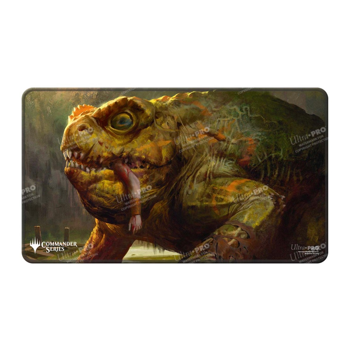 Commander Series Stitched Playmats feature popular artwork of your favorite Commanders from Magic: The Gathering! Made with a soft fabric top to reduce damage to cards during play and a non-slip rubber backing to keep the playmat from shifting during use, playmats enhance the gameplay experience. The stitched edges offer an added premium feel. With dimensions of approximately 24 in. x 13.5 in., a playmat also makes an excellent oversize mousepad for home or office.