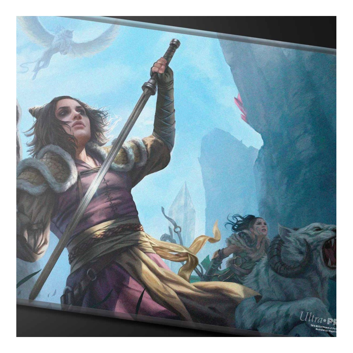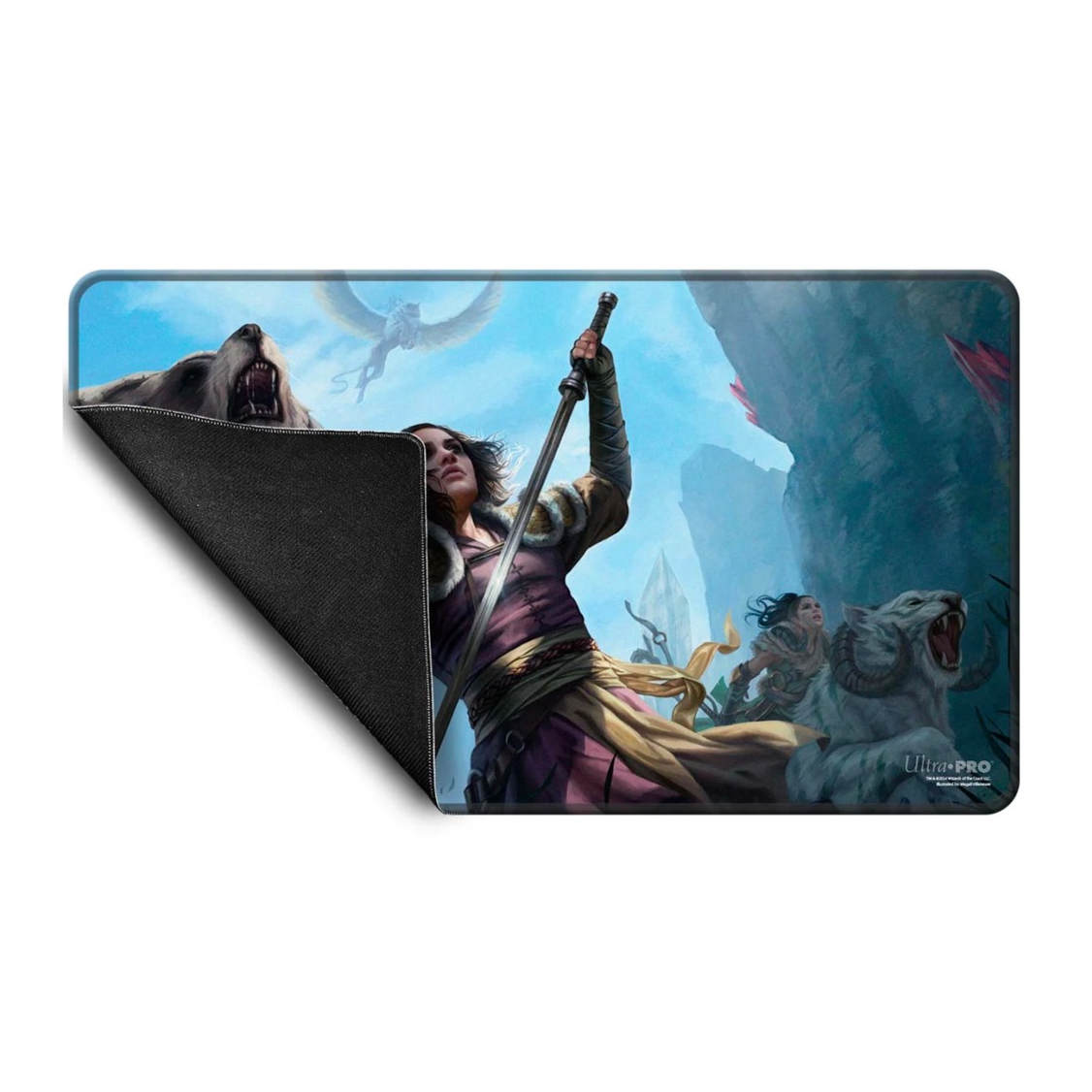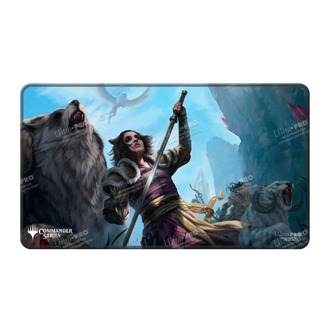 Commander Series Stitched Playmats feature popular artwork of your favorite Commanders from Magic: The Gathering! Made with a soft fabric top to reduce damage to cards during play and a non-slip rubber backing to keep the playmat from shifting during use, playmats enhance the gameplay experience. The stitched edges offer an added premium feel. With dimensions of approximately 24 in. x 13.5 in., a playmat also makes an excellent oversize mousepad for home or office.