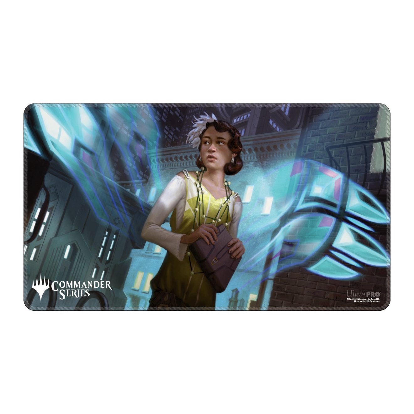 Officially licensed Stitched Edge Playmat for Magic: The Gathering Commander Series – Release 1 Features exclusive artwork Measures approximately 24 in. x 13.5 in. and lies flat Soft fabric top protects cards during gameplay Non-slip rubber backing keeps the playmat from shifting during use