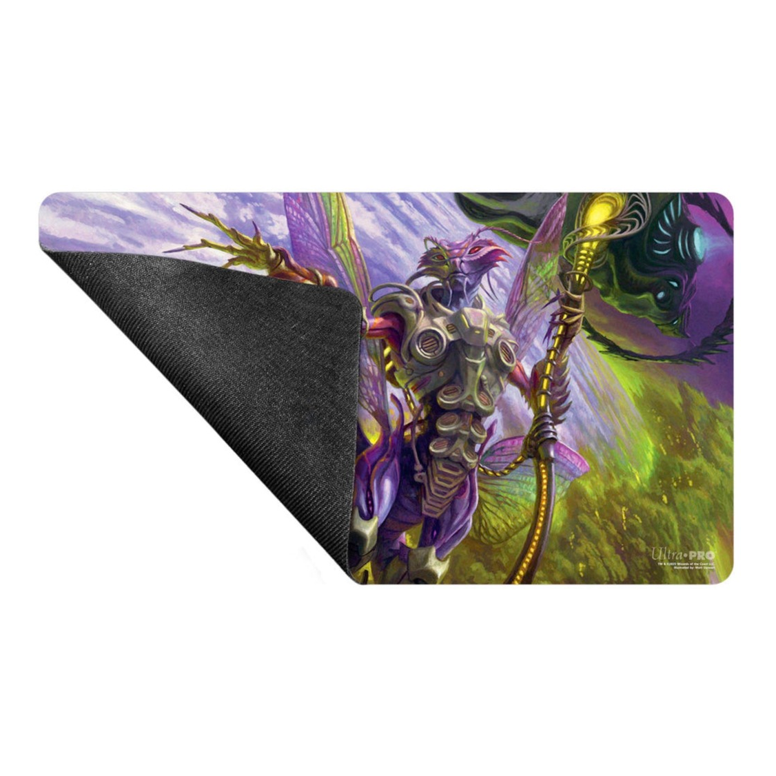 Playmats feature popular Magic: The Gathering artwork. Made with a soft fabric top to reduce damage to cards during play and a non-slip rubber backing to keep the playmat from shifting during use, playmats enhance the gameplay experience. With dimensions of approximately 24 in. x 13.5 in., a playmat also makes an excellent oversize mousepad for home or office.