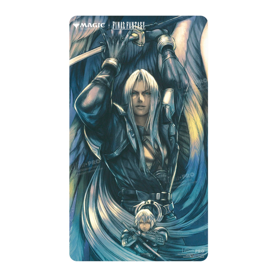 Double-Sided Playmats featuring popular Magic: The Gathering®—FINAL FANTASY™ Sephiroth, Fabled SOLDIER / Sephiroth, One-Winged Angel artwork printed on both sides of the playmat. Made with a soft fabric material to reduce damage to cards during play, playmats enhance the gameplay experience. The double-sided artwork provides a unique addition to any Magic: The Gathering® collection. With dimensions of approximately 24 in. x 13.5 in., a playmat also makes an excellent oversize mousepad for home or office.