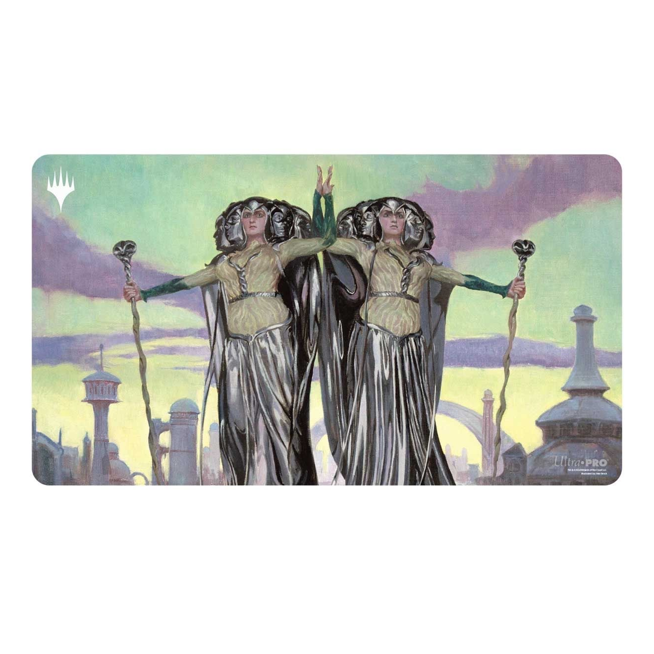 Playmats feature popular Magic: The Gathering artwork and enhance your gameplay experience! Each playmat is made with a soft fabric top to reduce damage to cards, and the non-slip rubber backing keeps the playmat from shifting during use. With dimensions of approximately 24 in. x 13.5 in., a playmat also makes an excellent oversize mousepad for home or office.