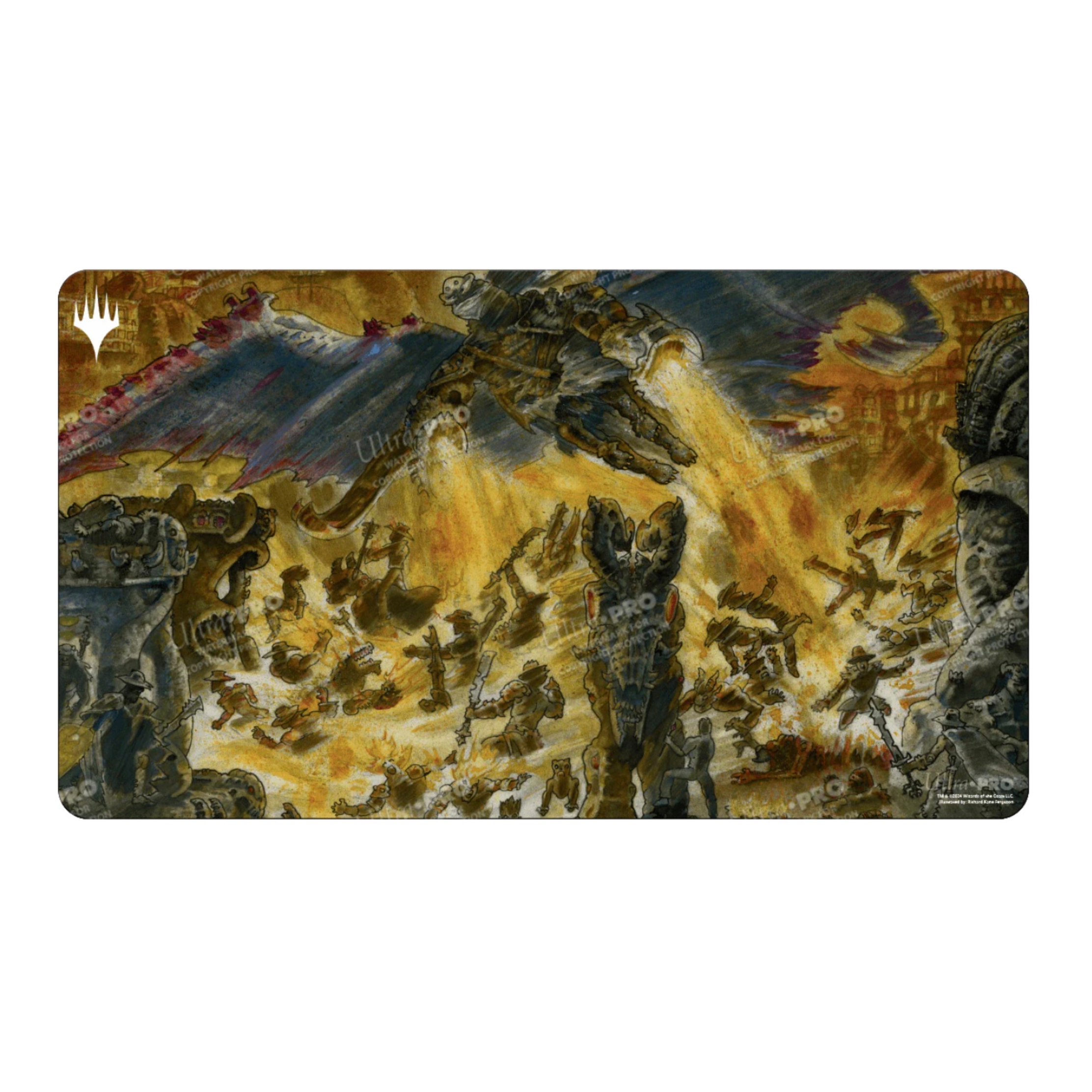 Playmats feature popular Magic: The Gathering artwork. Made with a soft fabric top to reduce damage to cards during play and a non-slip rubber backing to keep the playmat from shifting during use, playmats enhance the gameplay experience. With dimensions of approximately 24 in. x 13.5 in., a playmat also makes an excellent oversize mousepad for home or office.