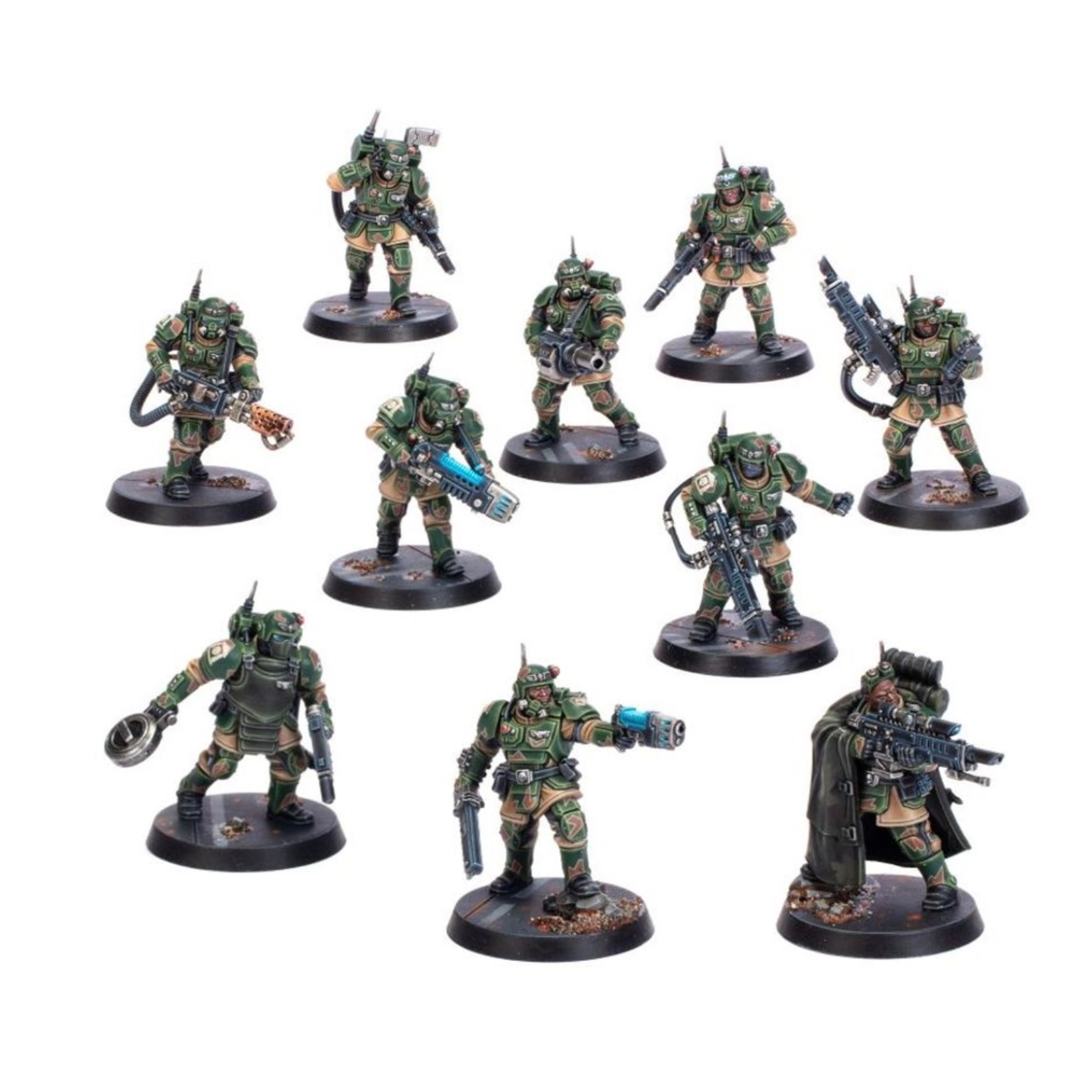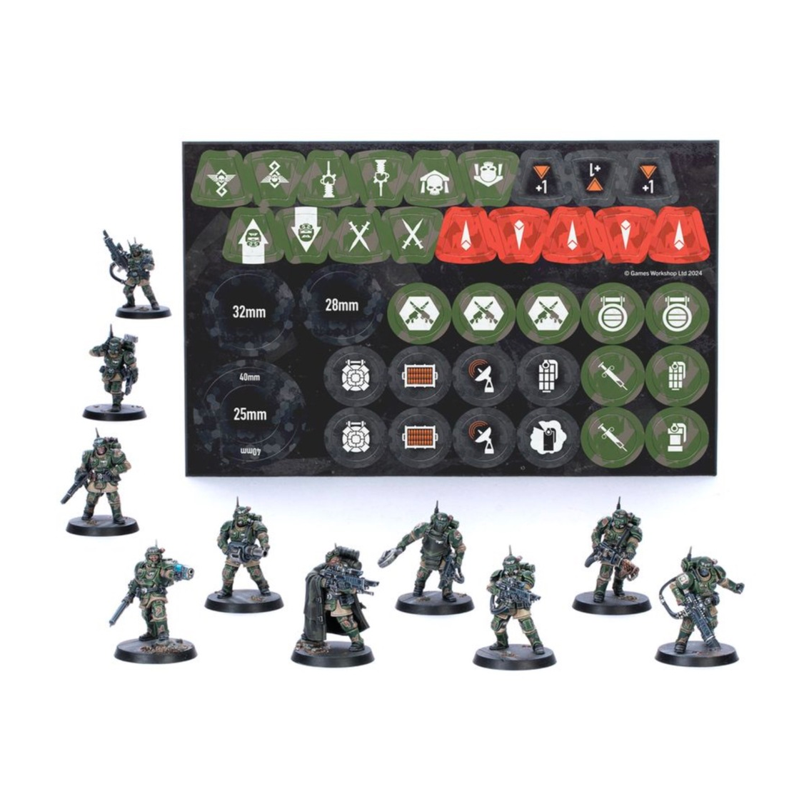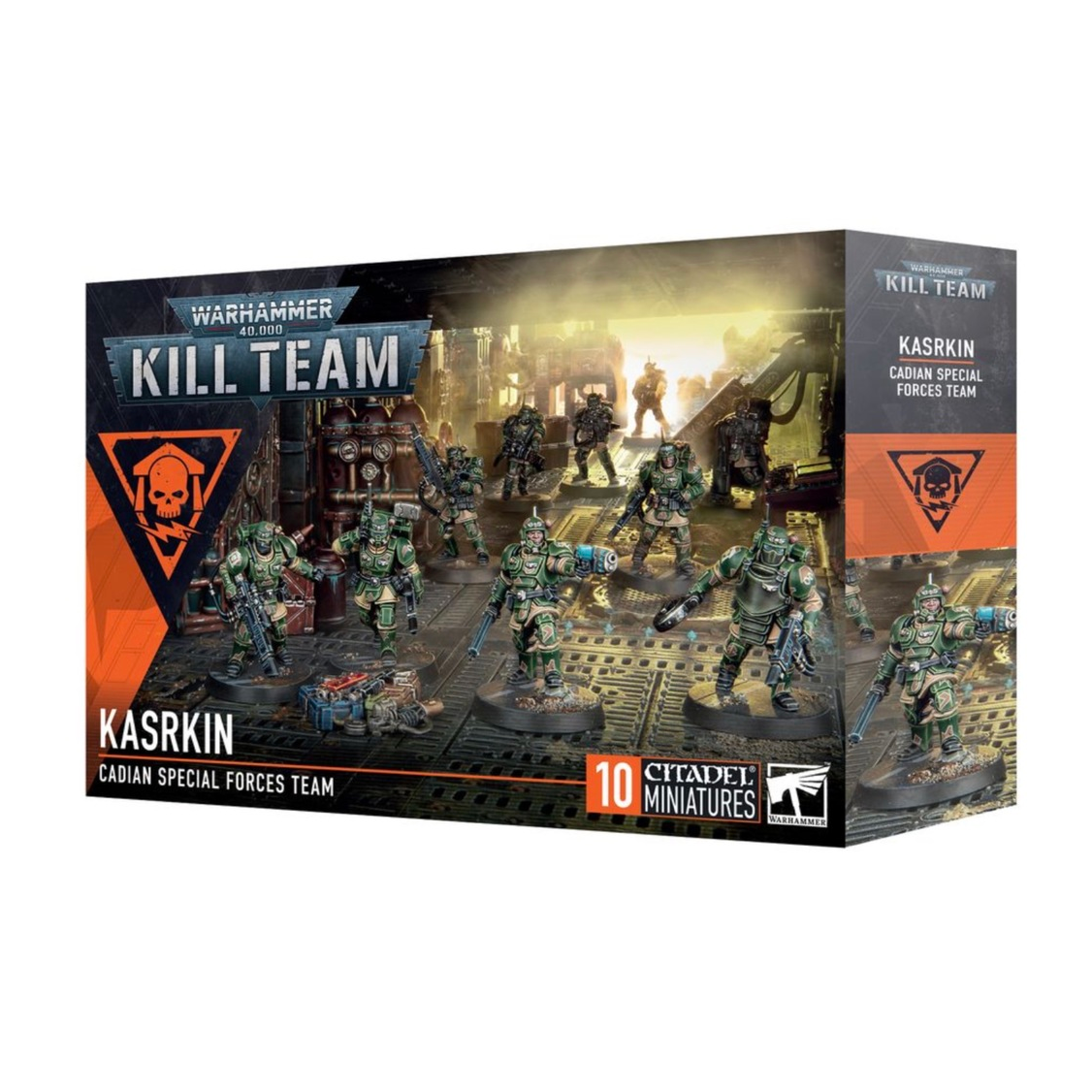 The Kasrkin are the elite of the elite. These special operatives are trusted with more potent weaponry – such as high-powered hot-shot lasguns – and are equipped with thicker carapace armour to protect them in the most dangerous killzones. This multipart plastic kit builds a squad of 10 Kasrkin, Cadia’s unmatched special forces. These miniatures can be used as Kasrkin operatives in games of Kill Team or fielded with Astra Militarum armies in games of Warhammer 40,000. These highly-trained soldiers are armed with hot-shot lasguns fuelled by a back-mounted power-pack and can be equipped with various special weapons – including grenade launchers, hot-shot volley guns, and meltaguns. The kit includes loads of interchangeable heads and accessories to customise your kill team, plus components to build specialists like the camouflaged Sharpshooter, stimm-wielding Combat Medic, explosive Demo-trooper, and more. Inside the box, you will also find a set of 38 Kasrkin tokens, so you can easily keep track of your equipment and in-game effects in the heat of battle. This set comprises 166 plastic components and is supplied with 10x Citadel 28.5mm Round Bases. This set also includes 1x Cadian Infantry Transfer Sheet containing 597 high-quality waterslide transfers for you to use to decorate your models. These miniatures are supplied unpainted and require assembly.