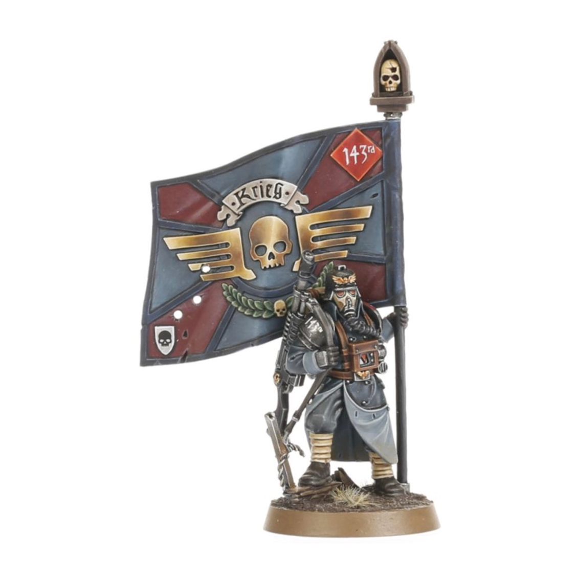 Grim, dour, and fanatically devoted to the Imperium, the soldiers of the Death Korps of Krieg specialise in doing battle in the most horrific of conditions. They are known for their relentless, attritional style of warfare and possess a willingness to sacrifice millions of lives in pursuit of victory. Their conscripts are tested, selected, and relentlessly drilled almost from birth for their assigned role as Death Korps troopers.