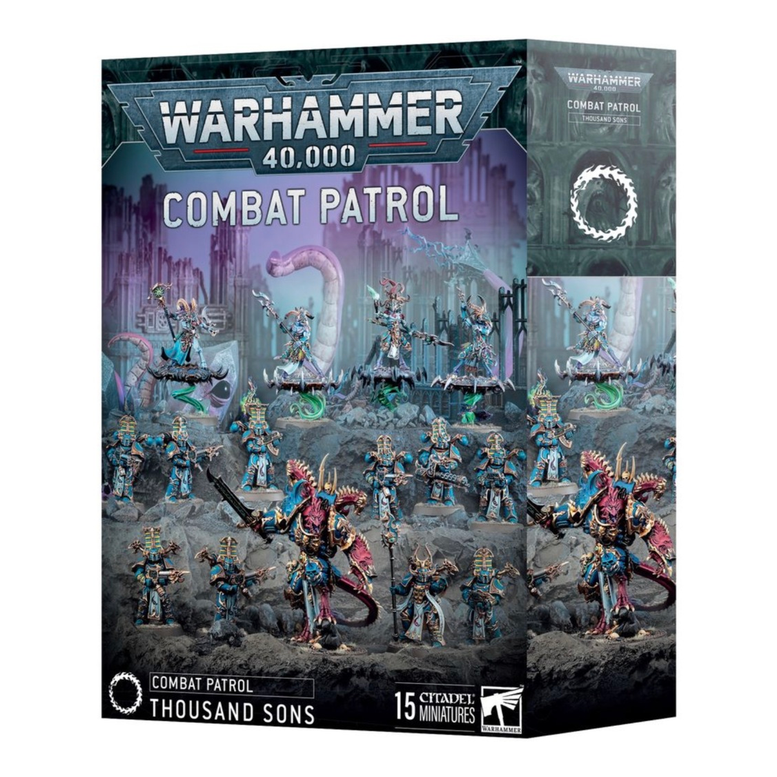 Questa scatola contiene 15 miniature di plastica che rappresentano una forza Prisma di Zadophon completa da utilizzare nelle partite a Warhammer 40,000 in formato Pattuglia da Combattimento. È il modo ideale per iniziare un’armata dei Thousand Sons o ampliare una collezione già esistente, risparmiando rispetto all’acquisto dei singoli kit.