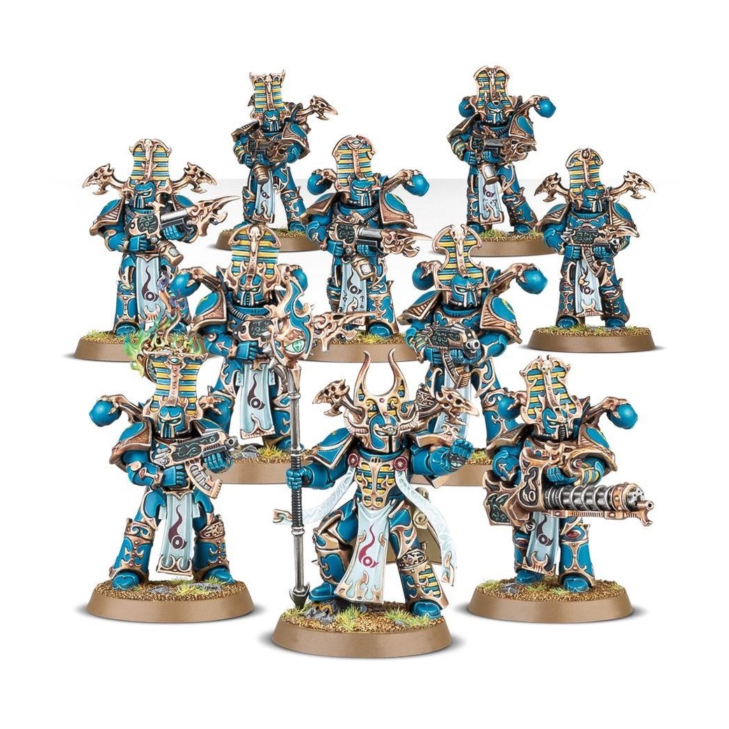 Il Principe Demone Zadophon è uno stregone potente e un guerriero mostruoso spaventoso a vedersi. La sua presenza è in grado di piegare l’intreccio del fato in forme più consone ai piani di Tzeentch, e i suoi rituali empyrici sono resi ancor più potenti se riesce a divorare anche un solo frammento di anima dei sottoposti caduti. Lo accompagna Kaa’Skrek, uno Tzaangor Sciamano che scatena sui nemici feroci bombardamenti psichici mentre si libra in volo sul suo Disco demoniaco. Tre Tzaangor Illuminati proteggono il loro leader, mentre un’unità di Marines della Rubrica avanza per rivendicare territori scatenando piogge di proiettili Inferno e Fuoco Warp stregato.