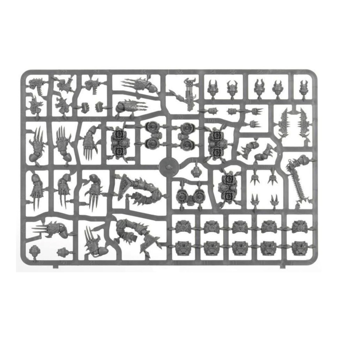 This multi-part plastic boxed set contains 116 components, five 32mm round bases, and a Chaos Space Marine Transfer Sheet, with which to build 5 Chaos Space Marines Raptors or 5 Chaos Space Marines Warp Talons.