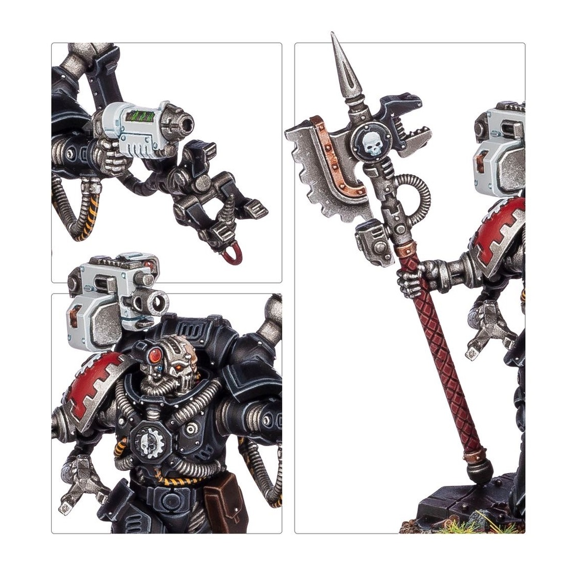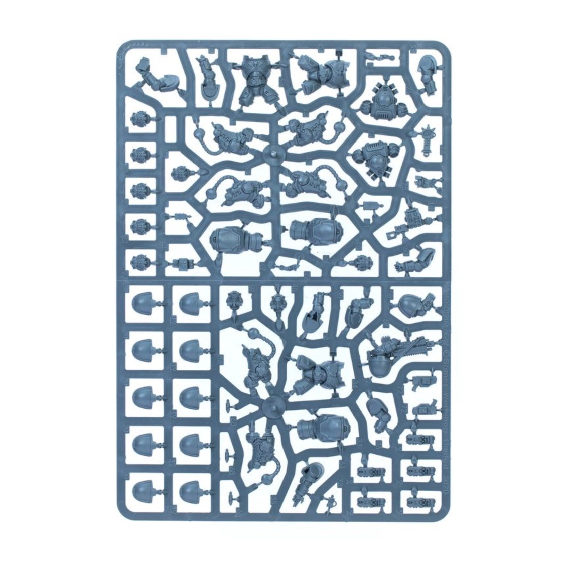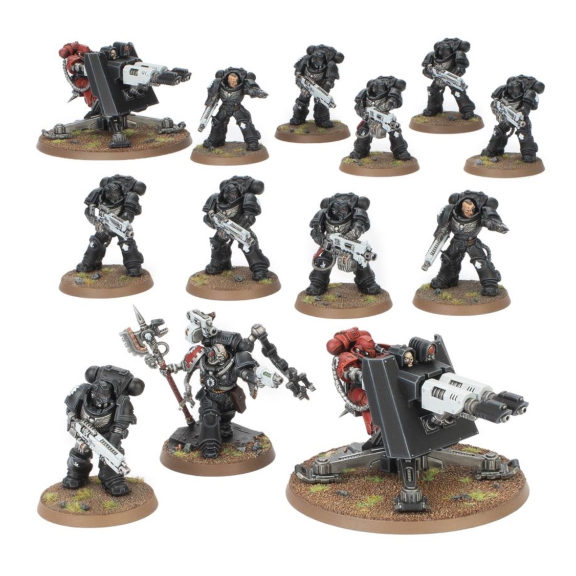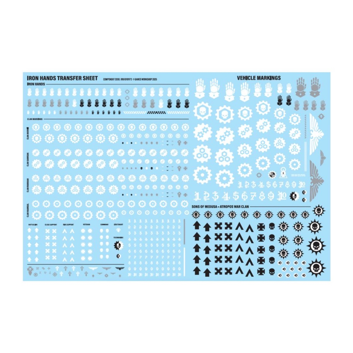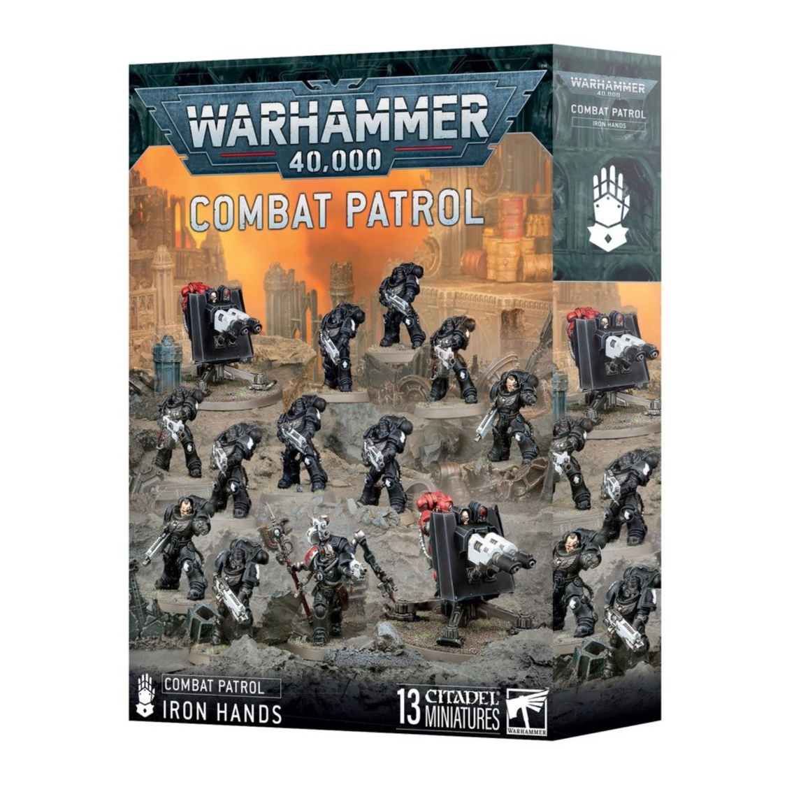The Iron Hands Chapter of Space Marines hold a close relationship with the Adeptus Mechanicus, making heavy use of augmetics and advanced weaponry. They are known to be cold and calculating, mercilessly gunning down their foes in overlapping volleys of fire. If you want to use cold logic to execute the enemies of the Imperium, this box is the perfect way to start a new Iron Hands collection – or expand an existing army – and save money compared to buying the kits individually. At the forefront is a Techmarine, blessed with augmentations from the Adeptus Mechanicus. Two units of 5 Heavy Intercessors stand ready to lay down hails of heavy bolt rifle fire and take key objectives. In support you’ll find a pair of Firestrike Servo-turrets, packing heavy weapons to take care of tough enemy units. These 13 plastic miniatures represent a complete Iron Hands force for use in tight, tactical Combat Patrol games of Warhammer 40,000. The rules for this Combat Patrol are available as a free download on the Warhammer Community website. This boxed set builds 13 multipart plastic Iron Hands miniatures: – 1x Techmarine – 2x Firestrike Servo-turrets – 10x Heavy Intercessors The miniatures in this box are easy to customise. The Techmarine has the choice of two heads – helmeted and bare – and either an open hand or a grav-pistol. The Firestrike Servo-turrets are each armed with your choice of tank-busting twin Firestrike las-talon, or infantry shredding twin Firestrike autocannon. The Heavy Intercessors are equipped with heavy bolt rifles, and up to two can be upgraded to carry heavy bolters. There are parts to build up to two optional sergeants, narrative options including reloading a gun, and cosmetic parts, purity seals, pistol holsters, and pouches. This kit is supplied with a brand new Iron Hands Transfer Sheet, containing 468 high-quality waterslide transfers. These include Chapter icons for the Iron Hands, battlefield role icons, and numbers. They also include iconography for the Atropos War Clan of the Sons of Medusa, Clan Avernii, Clan Garrsak, Clan Raukaan, and Clan Kaargul. This kit comprises 320 plastic components, 2x Citadel 80mm Round Bases with Holes, 11x Citadel 40mm Round Bases, and 1x Iron Hands Transfer Sheets containing 468 high-quality waterslide transfers. These miniatures require assembly and are supplied unpainted.