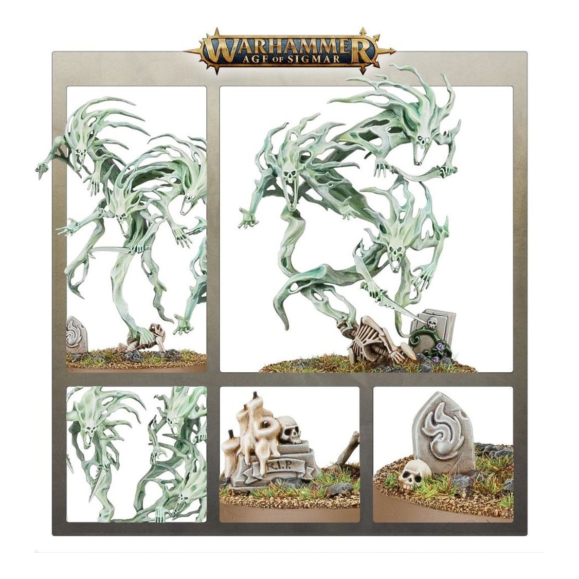 Choking the air above the Nighthaunt host are the most numerous of its warriors – the Spirit Hosts. These are the souls of the damned, stripped of body and identity, and they scream endlessly for the life they have lost.