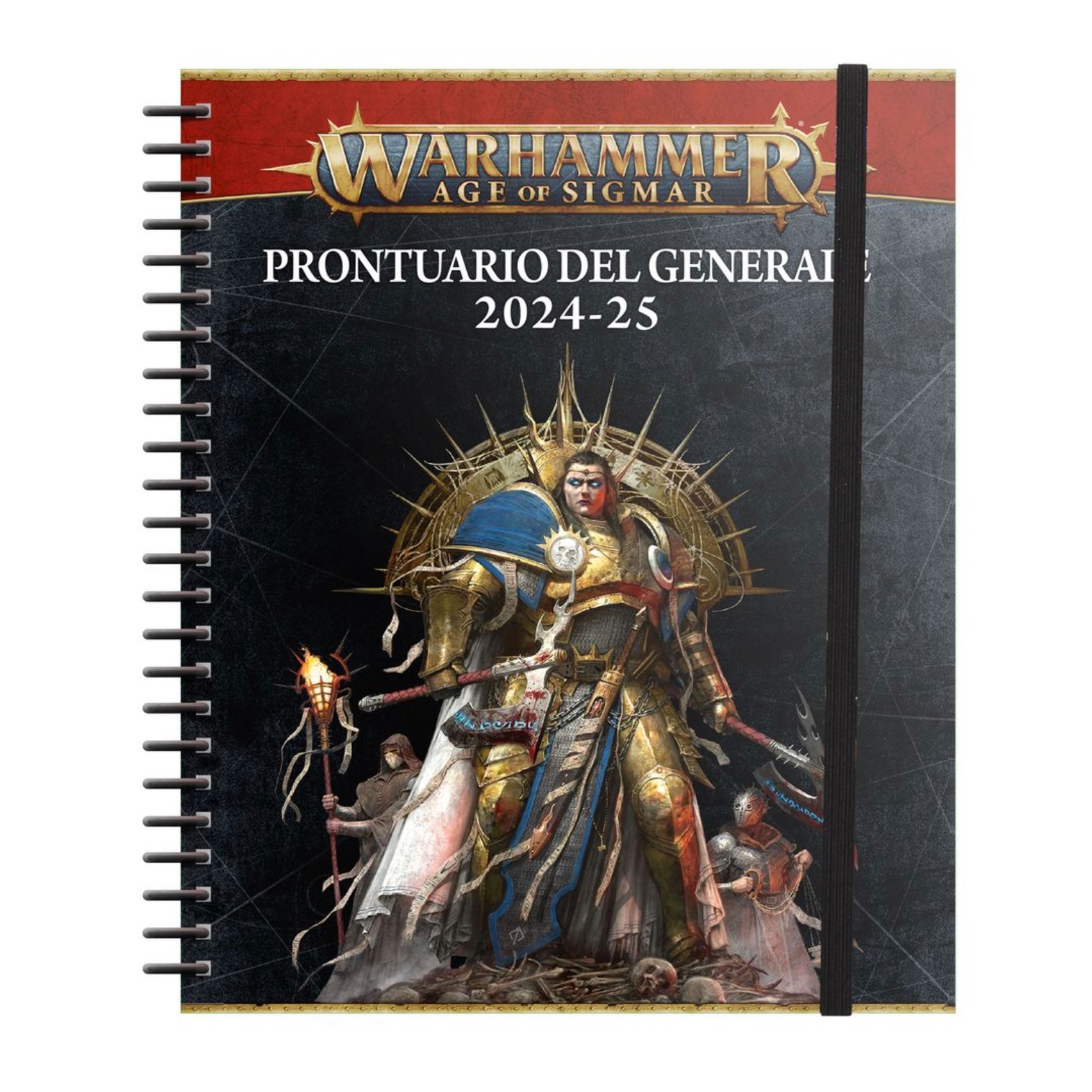Il Prontuario del Generale 2024-25 per Warhammer Age of Sigmar misura 161mmx210mm e comprende una pratica banda elastica, per facilitare le consultazioni nel vivo dello scontro.