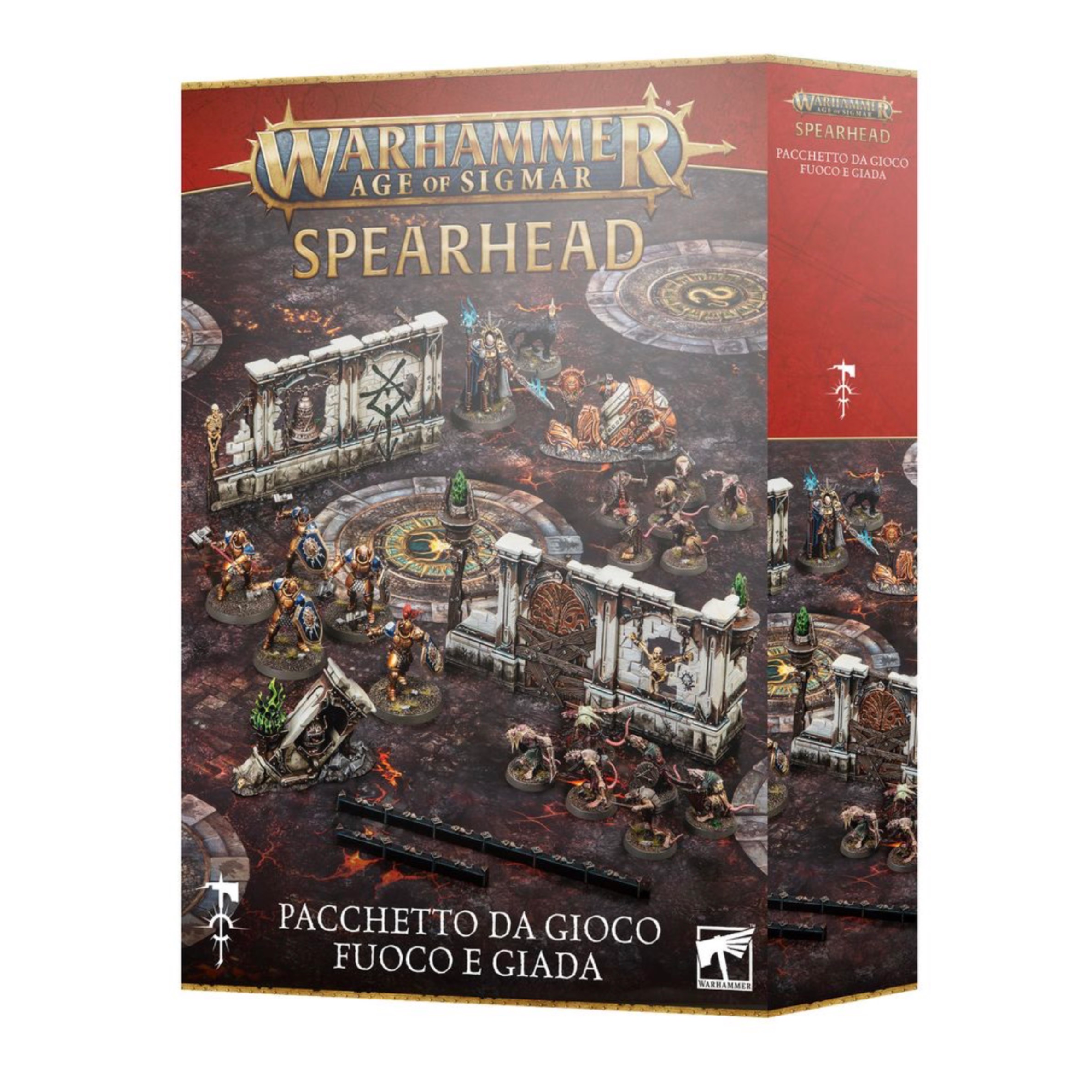 Spearhead è un nuovo ed entusiasmante modo per giocatori nuovi e non di godersi Warhammer Age of Sigmar. In questa modalità di gioco si disputano battaglie in scala ridotta rapide, strategiche e sempre diverse. Questo pacchetto contiene carte, terreni e accessori per giocare partite Spearhead a Warhammer Age of Sigmar. La plancia di gioco misura 30”x22,4” (le dimensioni specifiche per i match Spearhead) e su di essa sono stampati i segnalini obiettivo che le armate si contenderanno. I quattro elementi di terreno sono l’ideale per aggiungere tridimensionalità alle partite, oltre a creare ripari e opportunità di agguati. Sono inoltre incluse carte imprevisto, così le partite saranno in bilico fino all’ultimo tiro dei dadi, e carte tattiche di battaglia, che stabiliscono come si conquistano i punti vittoria e racchiudono potenti effetti monouso. CONTENUTO - 1x plancia a doppia faccia: su ogni lato di questa plancia sono stampati cinque obiettivi, studiati appositamente per le partite Spearhead. Una faccia raffigura il terreno devastato di Aqshy, il Regno del Fuoco, l’altra mostra invece il verde lussureggiante di Ghyran, il Regno della Vita. - 4x elementi di terreno a incastro: questo set di terreni mostra strutture sigmarite cadenti e deturpate con le icone e i simboli dei perversi Skaven. È l’ideale per disputare le partite Spearhead presenti nel libro Spearhead: Fuoco e Giada. - 36x carte Spearhead: mescola e pesca da questi mazzi contenenti imprevisti e tattiche di battaglia durante le partite. - 1x misuratore di distanze in plastica da 6” e 1x misuratore di distanze in plastica da 3”: provvisti di icone di teschi e ratti in rilievo per segnalare i pollici, questi misuratori di distanze si possono utilizzare separatamente o si possono combinare per ottenere un misuratore da 9”. Queste miniature a incastro, assemblabili senza colla, devono essere dipinte.